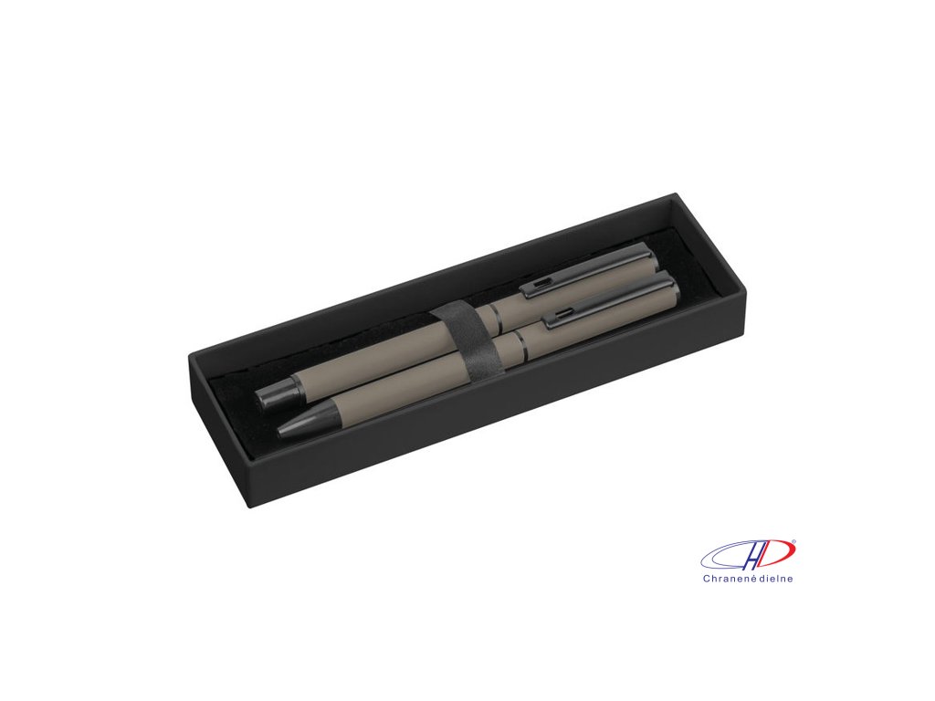 Písacia súprava obsahuje roller s čiernym atramentom a guľôčkové pero s modrým atramentom a otočným mechanizmom. Obe perá sú vybavené plastovými veľkokapacitnými náplňami a sú dodávané v darčekovej krabičke.Dodatočné parametre