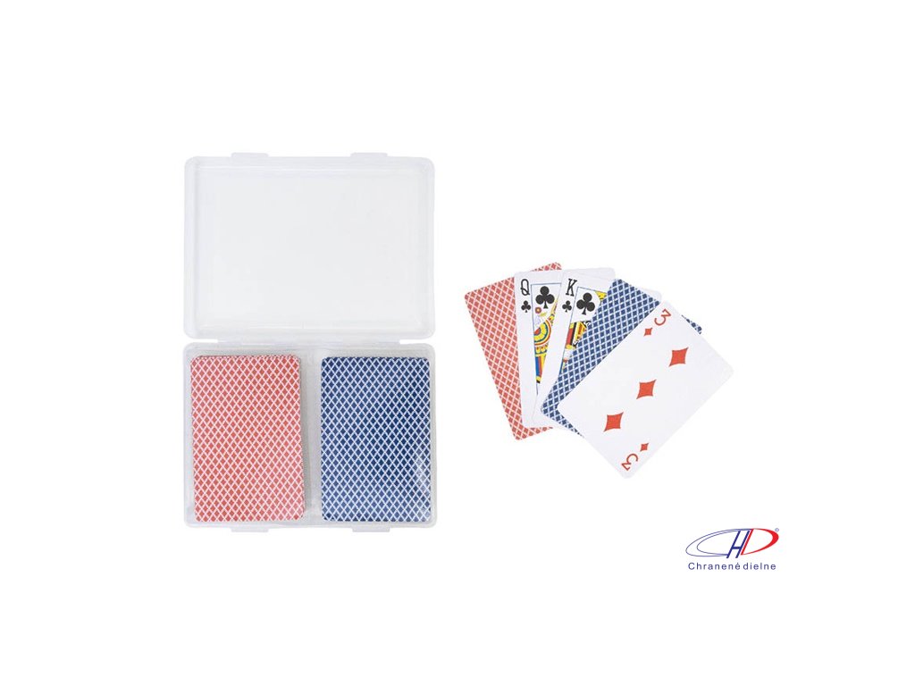 Súprava papierových francúzskych hracích kariet v krabičke z recyklovaného PP. Obsahuje dva štandardné balíčky po 54 kartách s červenou a modrou zadnou stranou.Dodatočné parametre