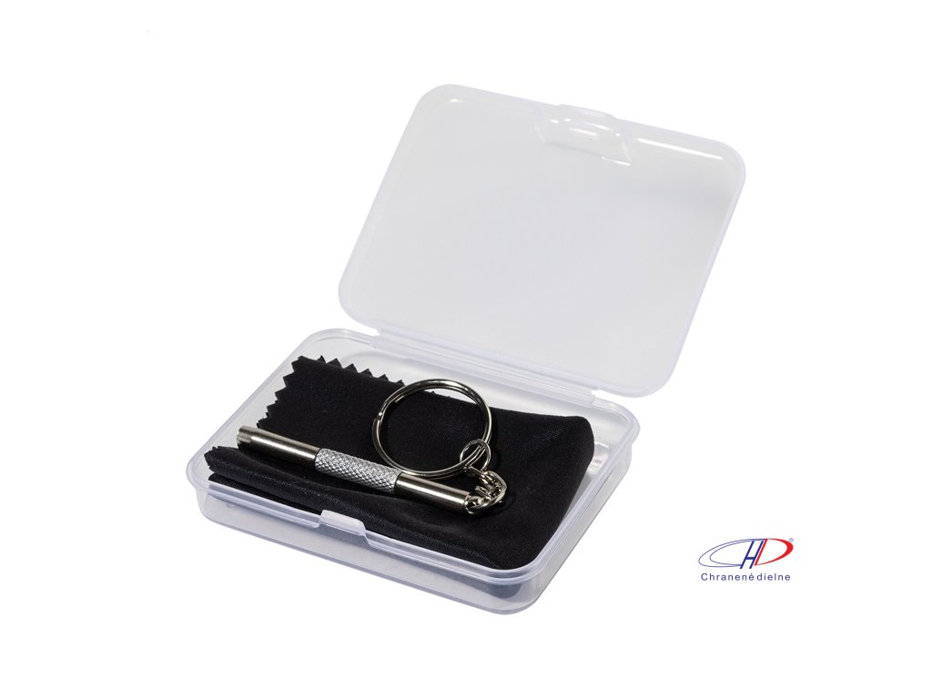 Kompaktná sada na opravu okuliarov v priehľadnej PP krabičke. Vrátane čistiacej handričky zo 100% RPET mikrovlákna (220 g/m2) a mini skrutkovača s kľúčenkou. Rozmer handričky: 18×15 cm.Dodatočné parametre