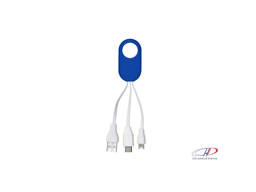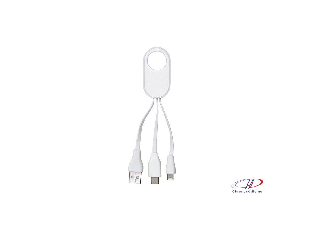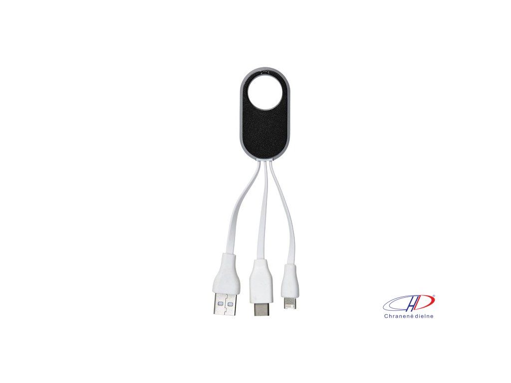 Sada nabíjacieho kábla ABS 3 v 1 s USB-C, bleskom a štandardným USB. Každý kábel je cca. 5,5 cm dlhý a prichytáva sa k držiaku s otvorom (? 1,8 cm).