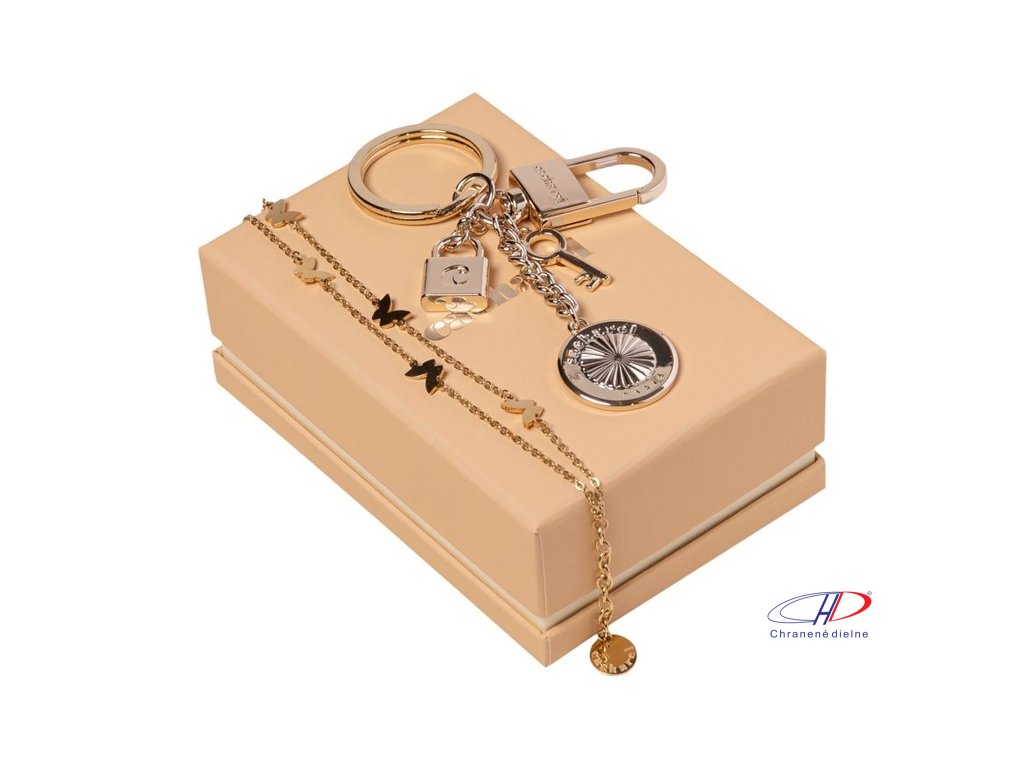 Dámska sada v darčekovom balení obsahuje náramok a kľúčenku.