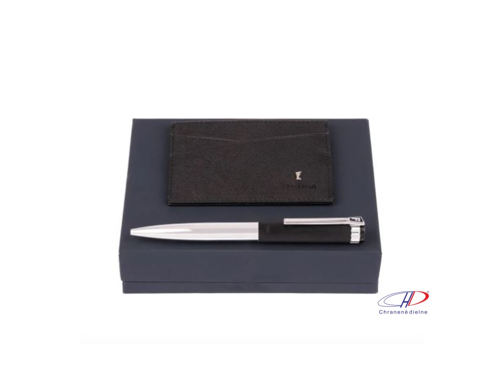 Sada obsahuje guľôčkové pero s čiernou náplňou a obal na karty. Darčekové balenie.