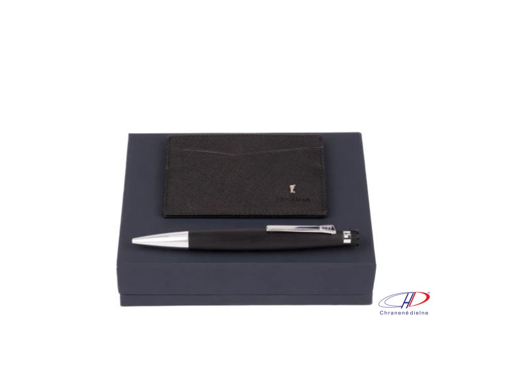 Sada obsahuje guľôčkové pero s čiernou náplňou a obal na karty. Darčekové balenie.