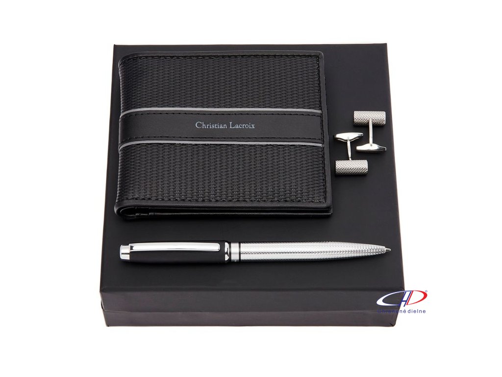 Pánska sada v darčekovom balení obsahuje guľôčkové pero Caprio (modrá náplň), peňaženku a manžetové gombíky.Dodatočné parametre