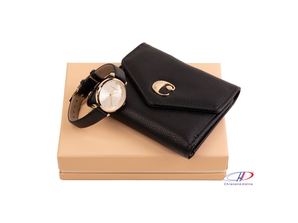 Dámska sada v darčekovom balení obsahuje peňaženku a hodinky.