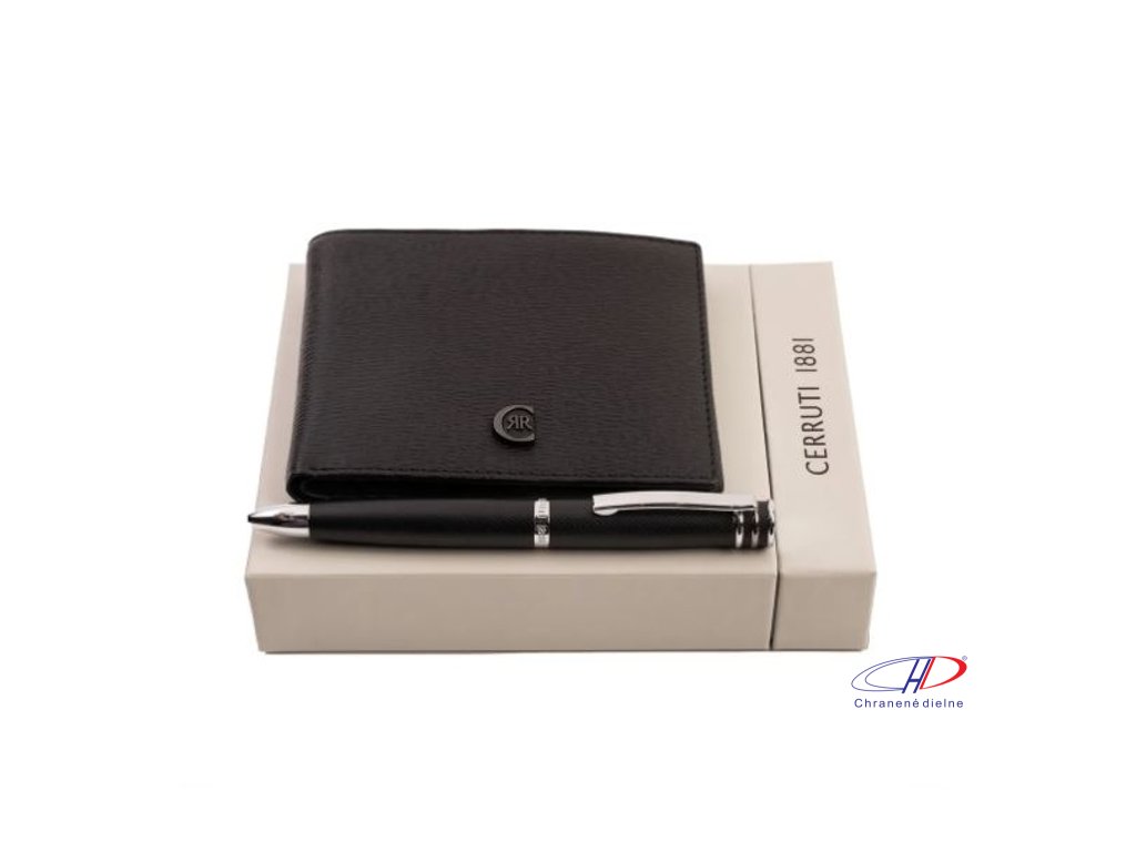 Pánska sada v darčekovom balení obsahuje guľôčkové pero (modrá náplň) a peňaženku na karty.