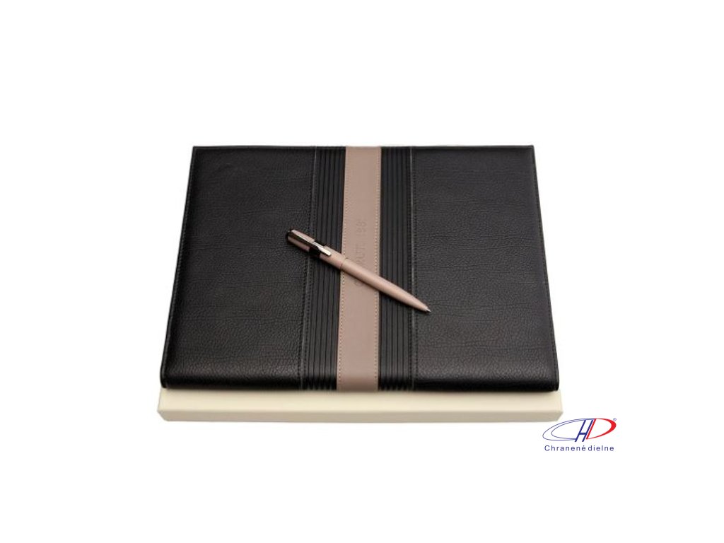 Sada obsahuje guľôčkové pero s modrou náplňou a portfólio formátu A4 s blokom s čistými stranami. Darčekové balenie.Dodatočné parametre