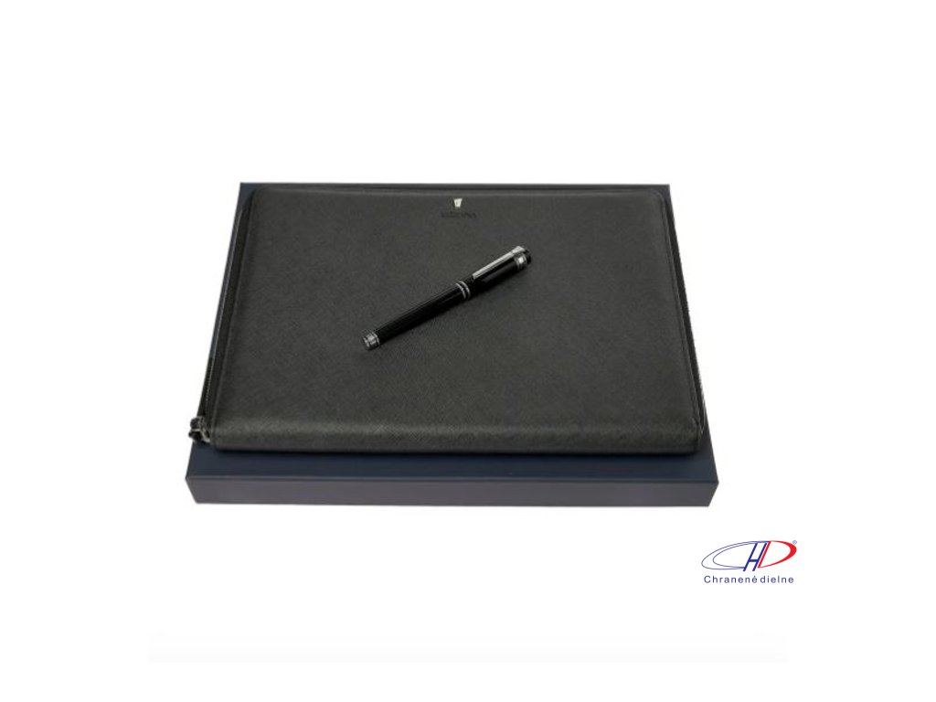 Sada obsahuje plniace pero s modrou náplňou a portfólio formátu A4 na zips s blokom s čistými stranami. Darčekové balenie.Dodatočné parametre