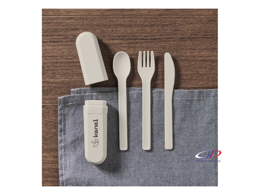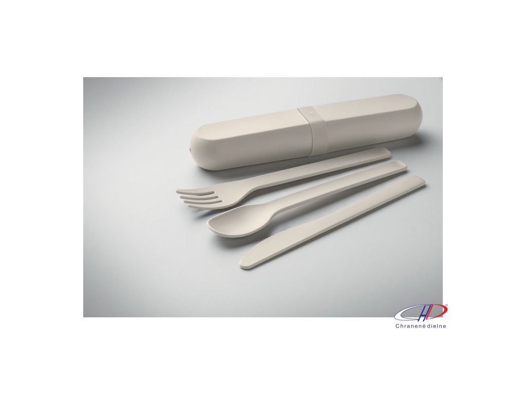 Sada opakovane použiteľných príborov s puzdrom z PLA kukurice. Každá sada obsahuje vidličku, nôž, lyžicu a praktické prenosné puzdro na príbory.Dodatočné parametre