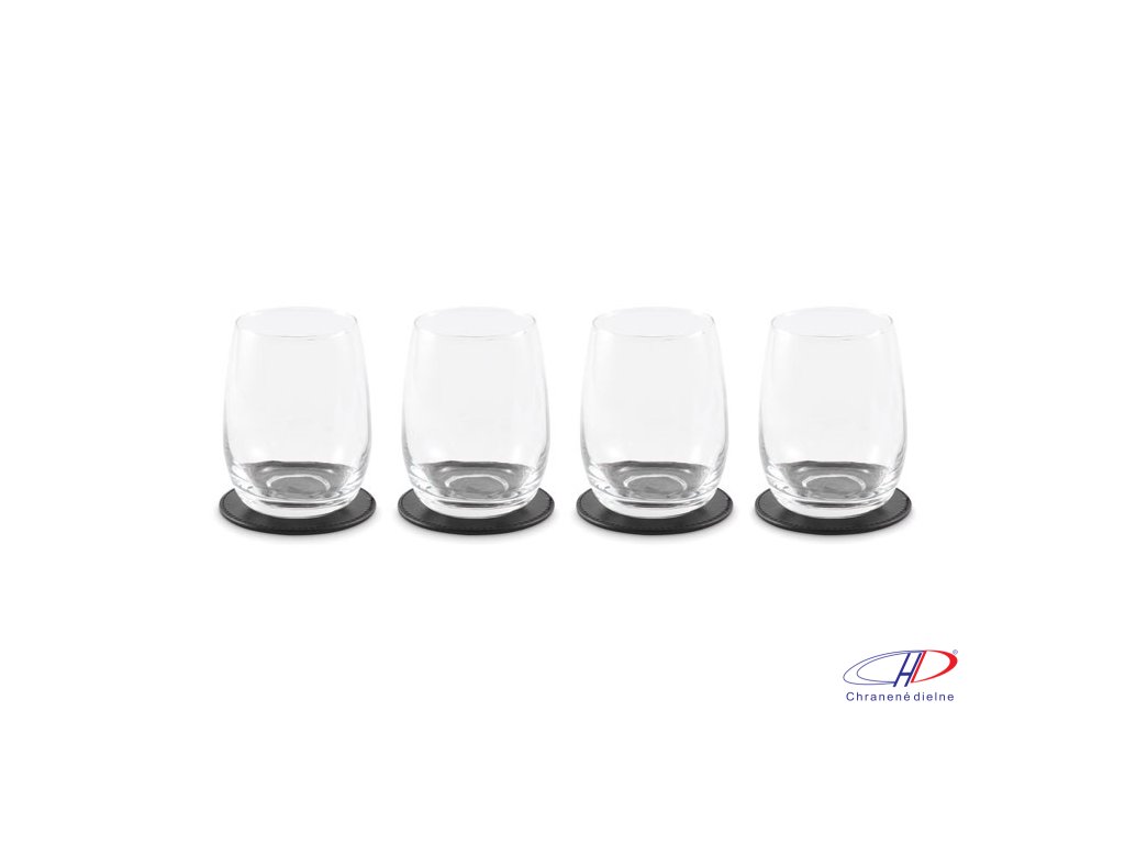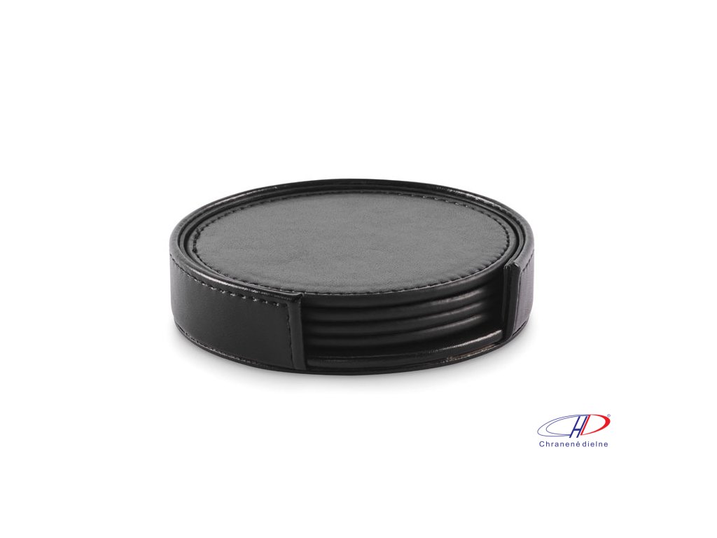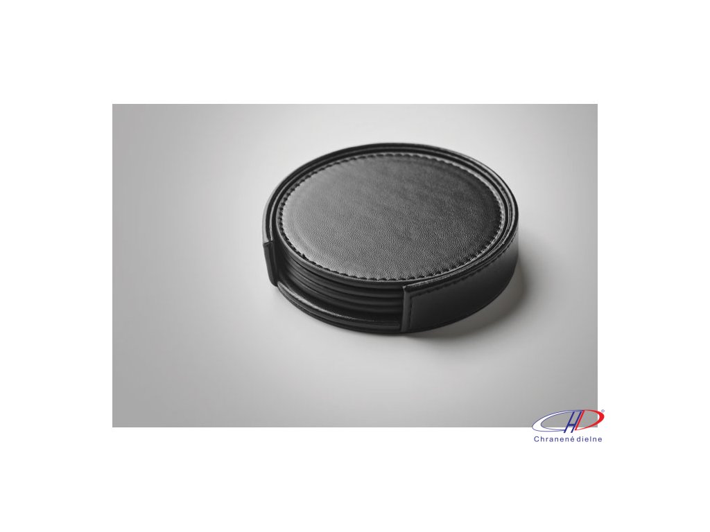 Sada 4 podložiek pod poháre z PU v PU držiaku.