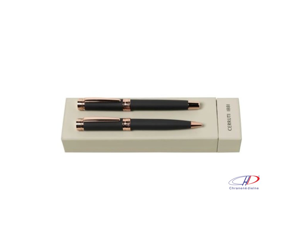 Sada obsahuje guľôčkové pero s modrou náplňou a roller s čiernou náplňou. Darčekové balenie.