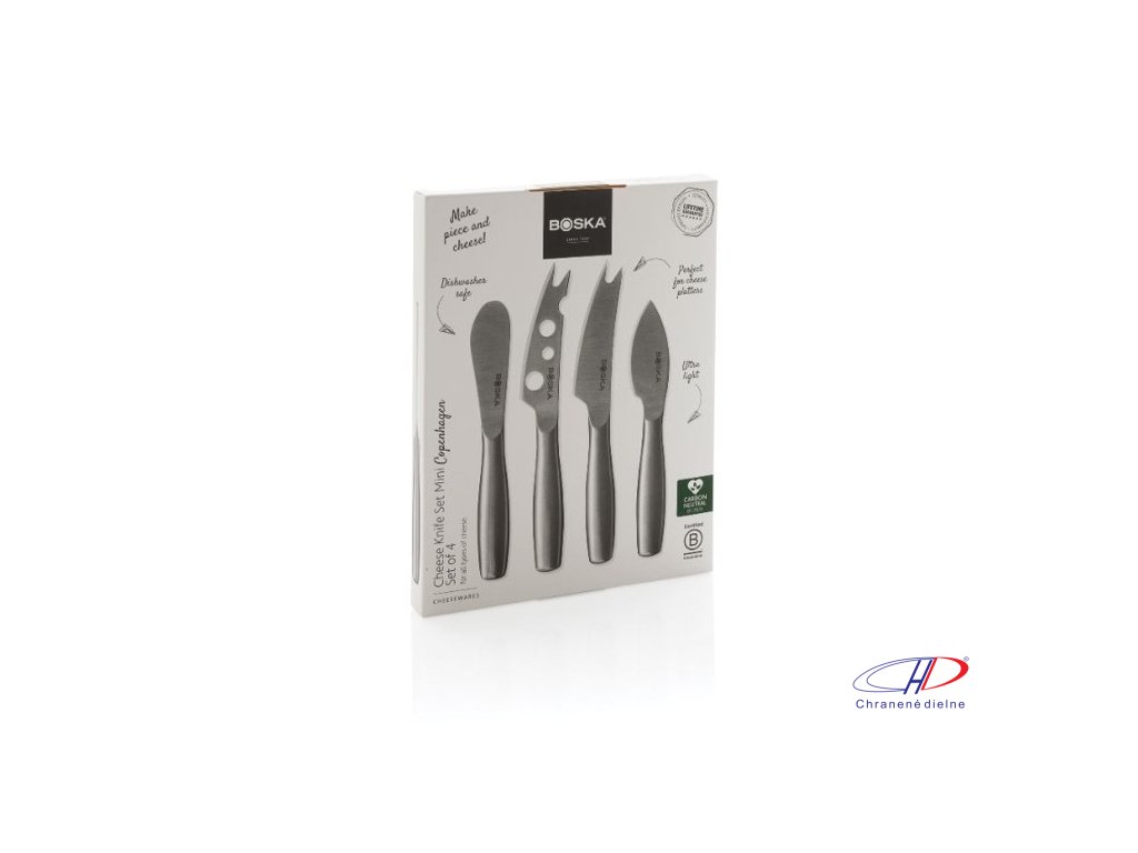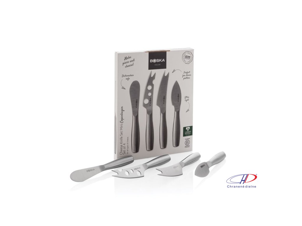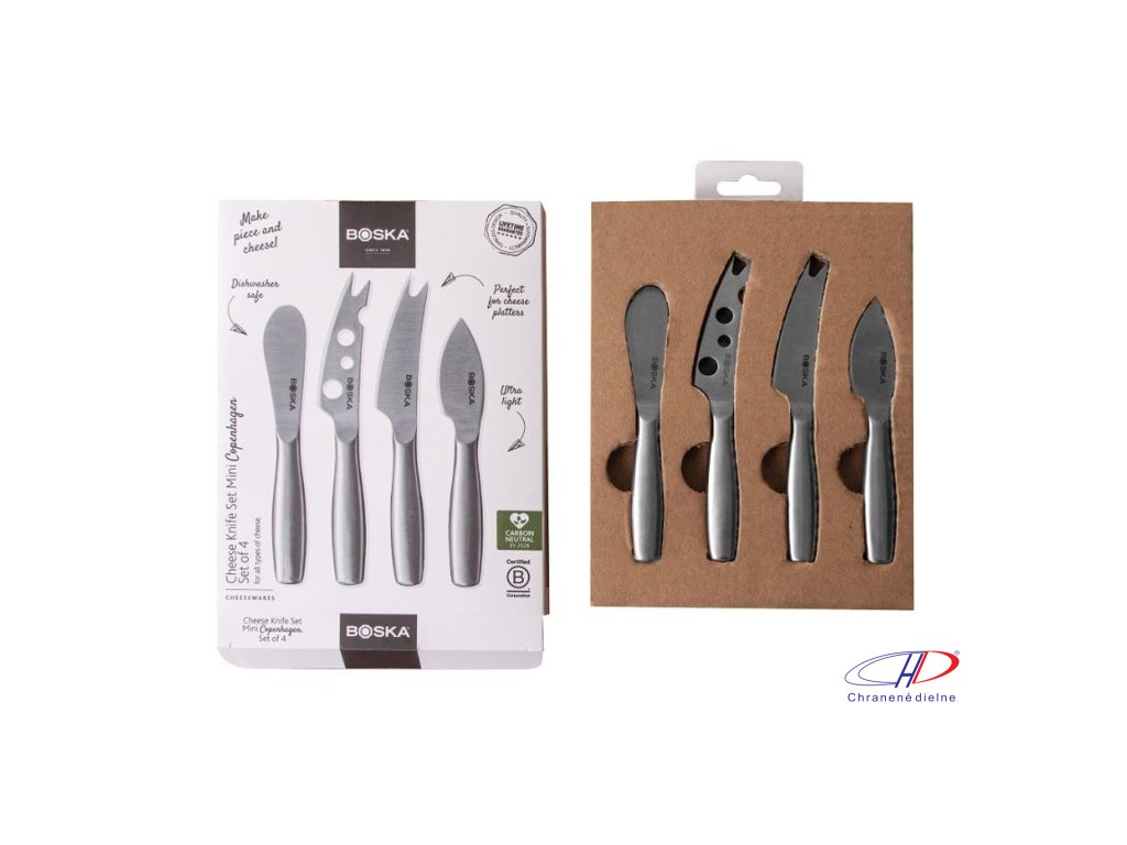 Sada nožov na syr BOSKA Mini Copenhagen obsahuje štyri nerezové nože na krájanie všetkých druhov syrov - tvrdých, mäkkých aj roztierateľných. Je možné ich umývať v umývačke a skladovať v chladničke. Na výrobok je doživotná záruka.Dodatočné parametre