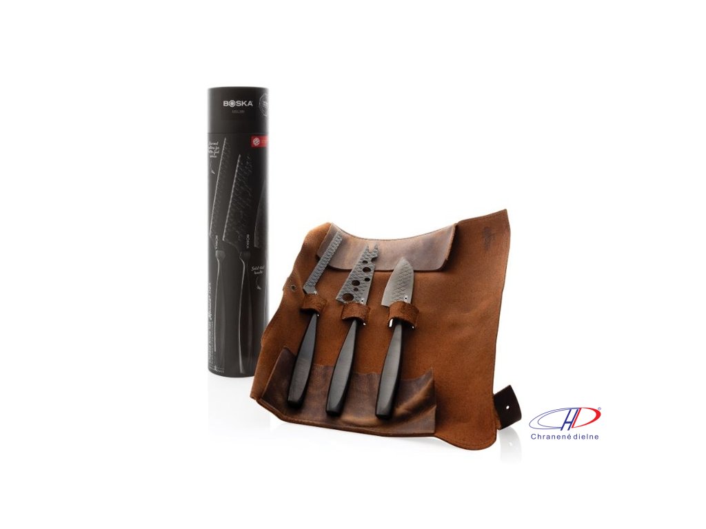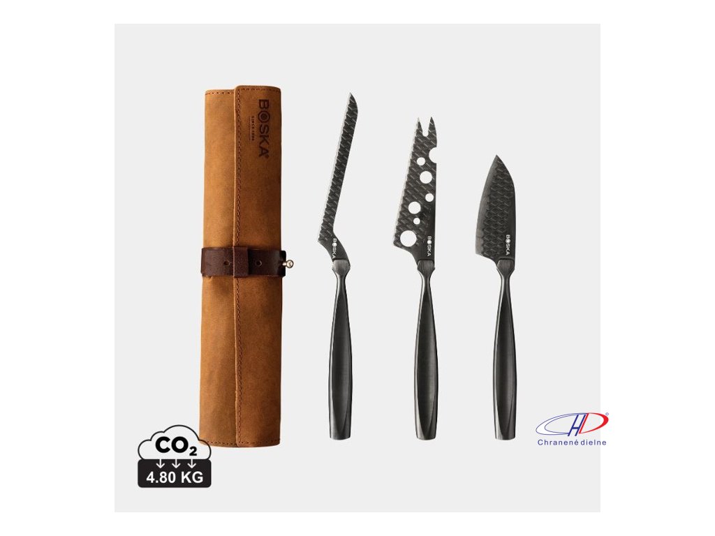 Súprava nožov na syr BOSKA Monaco+ Black obsahuje nerezové nože s nepriľnavým povrchom a koženým puzdrom. Sú vhodné na všetky druhy syrov, je možné ich skladovať v chladničke a umývať iba ručne. Na výrobok je 10-ročná záruka.Dodatočné parametre
