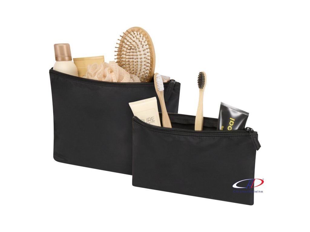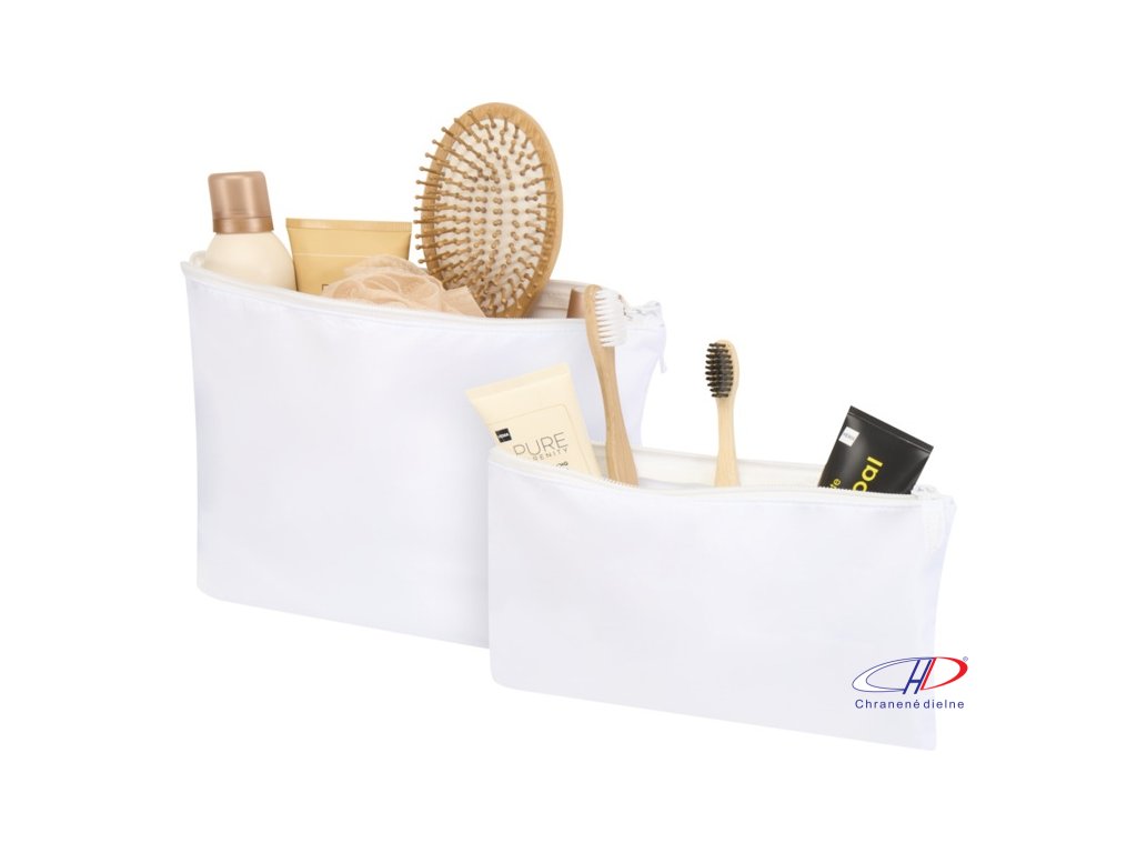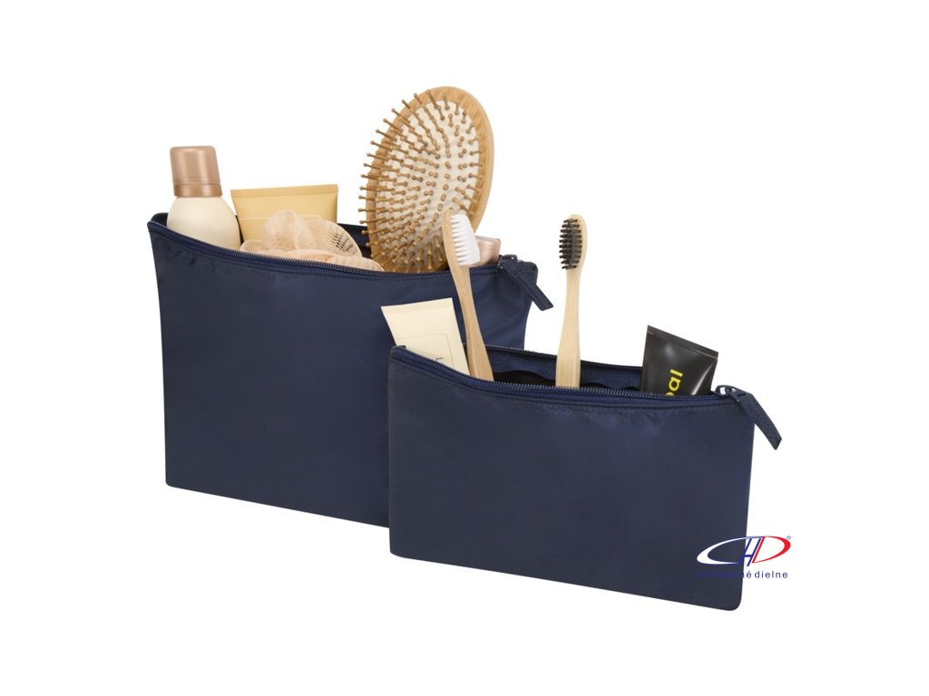 Súprava 2 toaletných taštičiek vyrobených z recyklovaného polyesteru s certifikáciou GRS. Sada obsahuje jednu veľkú a jednu malú tašku na prehľadné uloženie vecí. Ľahké, odolné a ľahko všetko zbalíte. Veľká taška má rozmery 32 × 21 cm, malý 23 × 13 cm.Dodatočné parametre