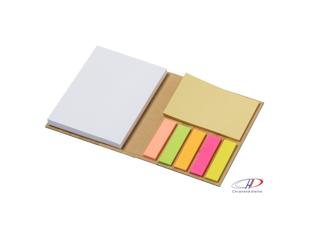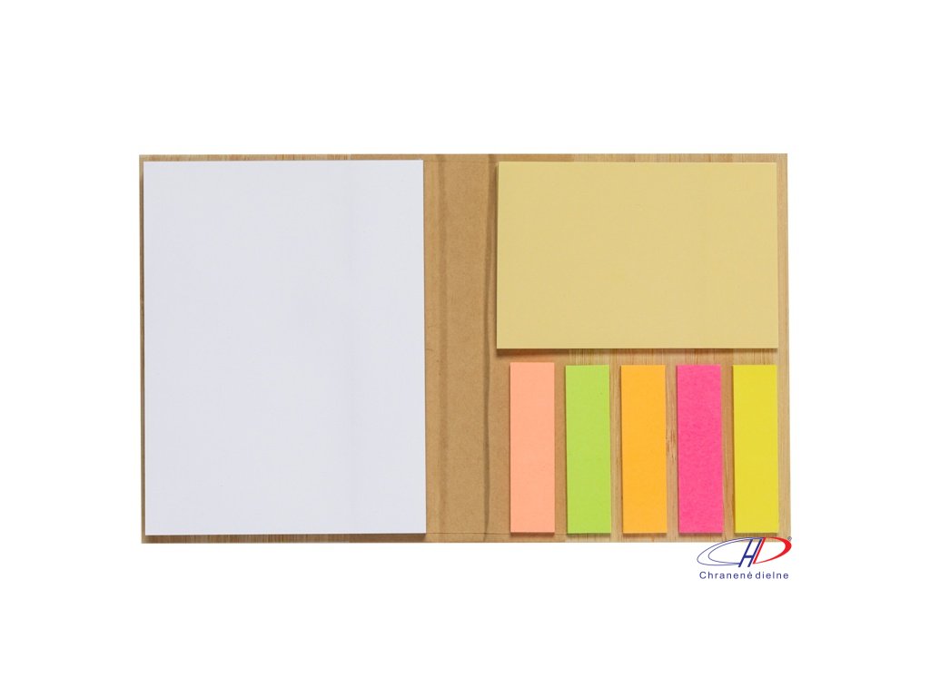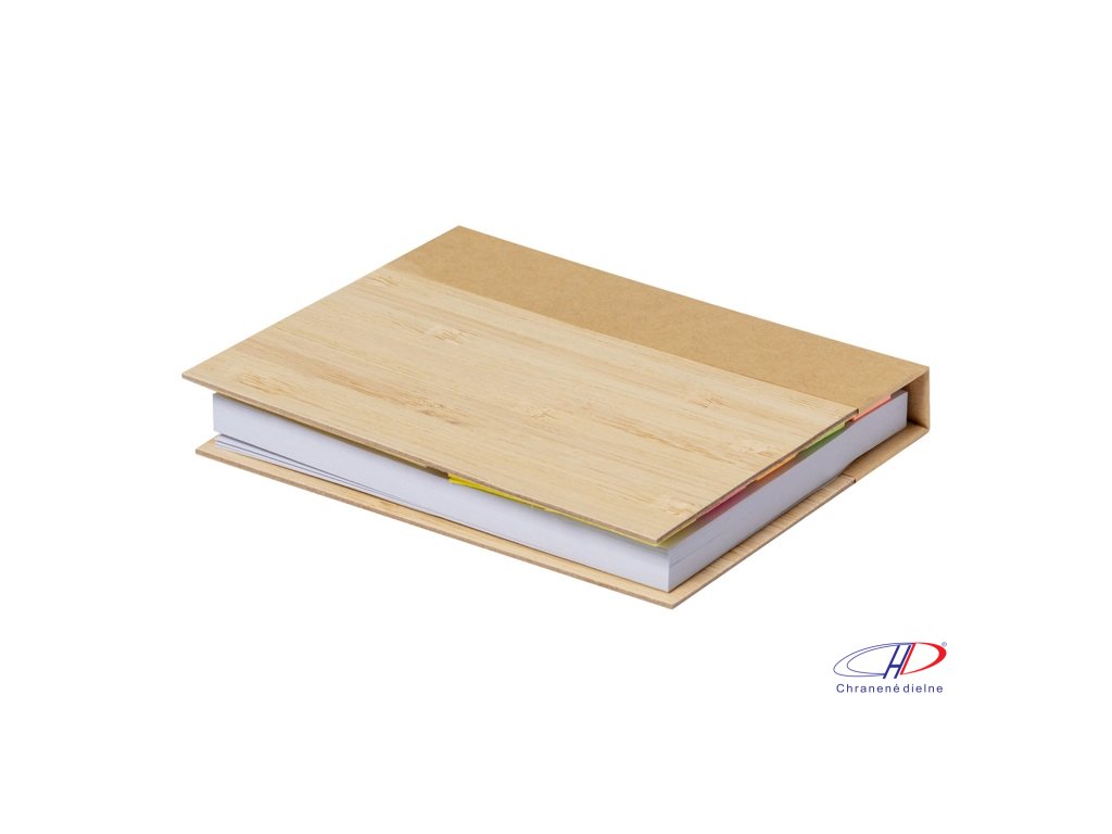 Poznámkový blok potiahnutý bambusom so 70 listami, 25 lepiacimi papierikmi a 125 popisovačmi stránok (v 5 rôznych farbách).Dodatočné parametre