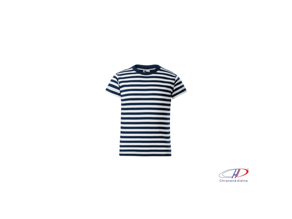 pruhy v kombinácii biela a tmavomodrá, strih s bočnými švami, úzky lem priekrčníka z rebrového úpletu 1:1 s 5 % elastanu, vnútorná časť priekrčníka začistená páskou z povrchového materiálu, spevnenie ramenných švov páskouDodatočné parametre