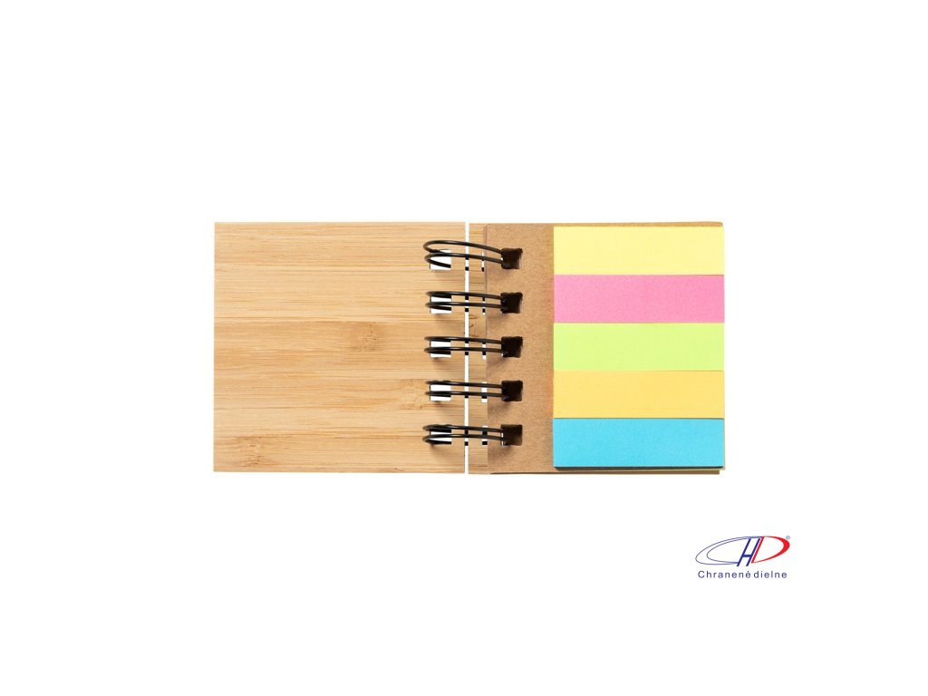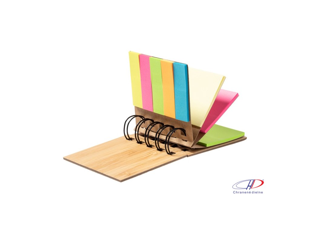 Špirálový poznámkový blok potiahnutý bambusom so 75 veľkými (v 3 rôznych farbách) a 125 malými lepiacimi poznámkami (v 5 rôznych farbách).Dodatočné parametre