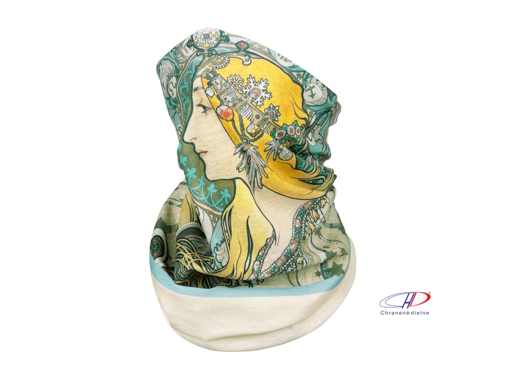 Viacúčelová šatka s obrazom Zodiak známeho maliara Alfonsa Muchu je elegantným doplnkom a príjemne zahreje.Dodatočné parametre