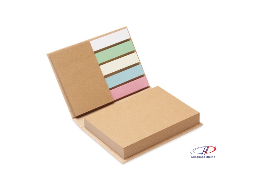 Třídílný poznámkový set z recyklovaného papíru. Velké a střední bločky samolepicích poznámek a 5 různobarevných oddělovačů. Vyrobeno v EU.
