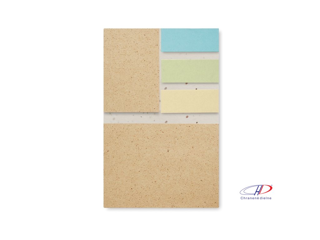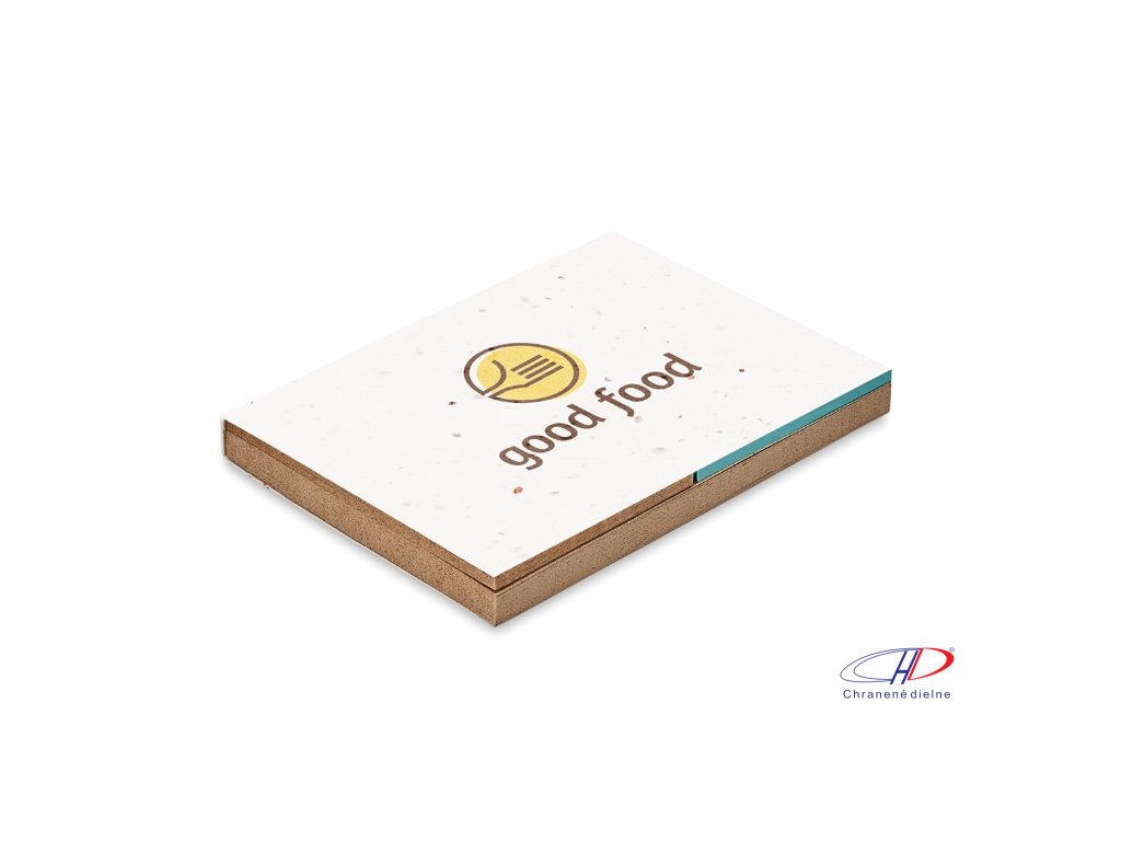 bloček s mäkkou obálkou, 25 listov. tri farebné oddeľovače. obsahuje semená lúčnych kvetov, ktorá vyrastú po zasadení do hliny.