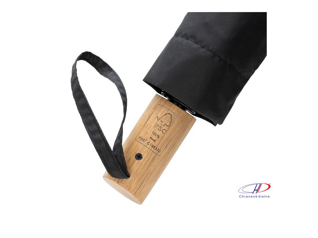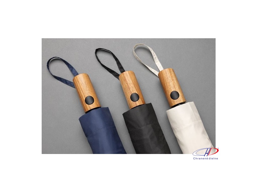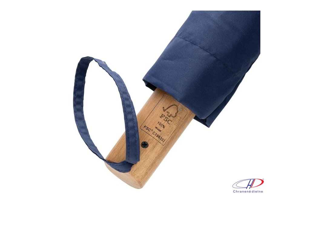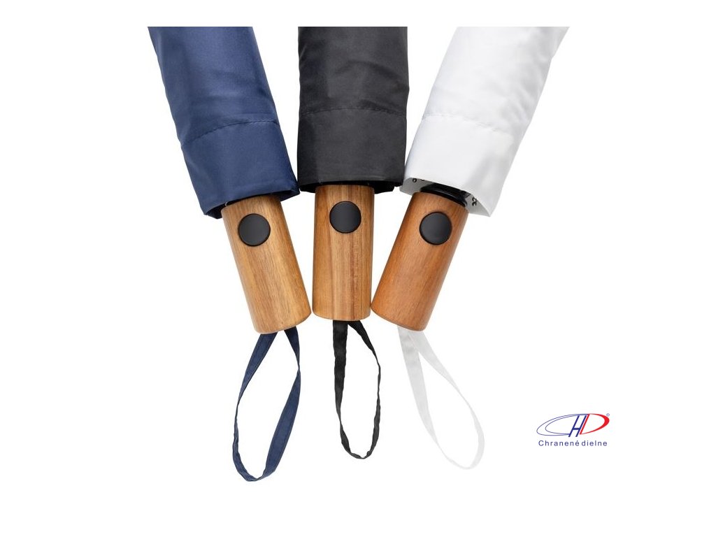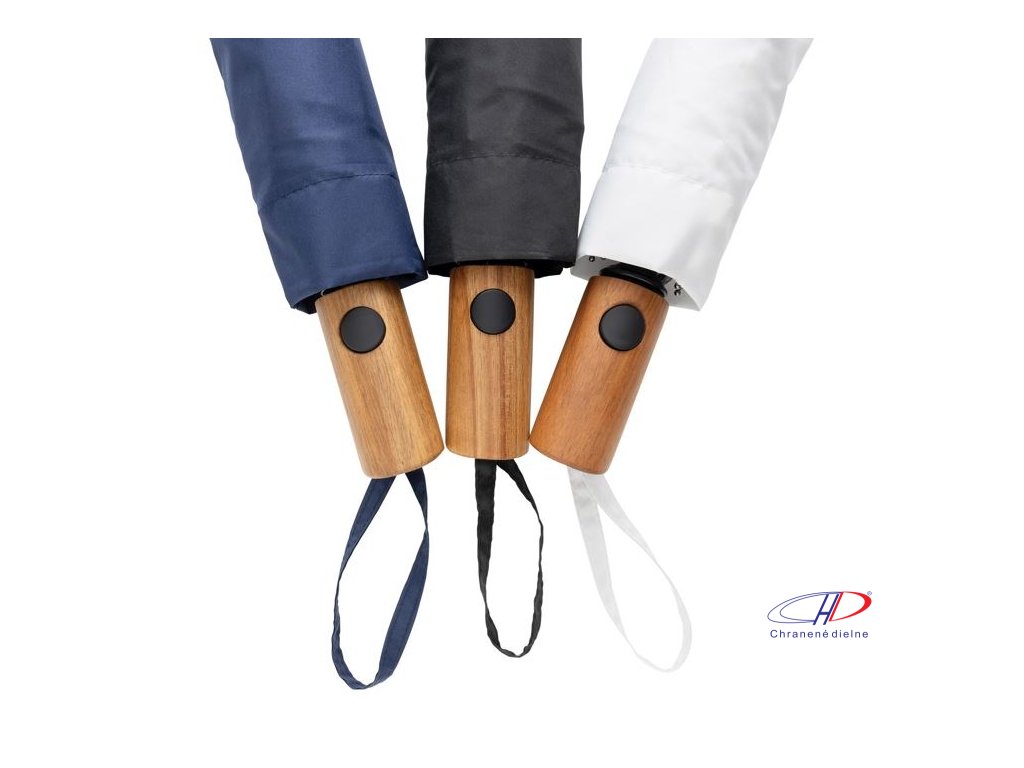 Kompaktný 3-dielny automatický dáždnik má kovový rám, rebrá zo sklených vlákien a rukoväť z akáciového dreva (FSC®). Strieška z RPET s indikátorom AWARE™. Výťažok 2% ide na podporu iniciatívy Water.org. Drevená rukoväť môže mať farebné rozdiely.Dodatočné parametre