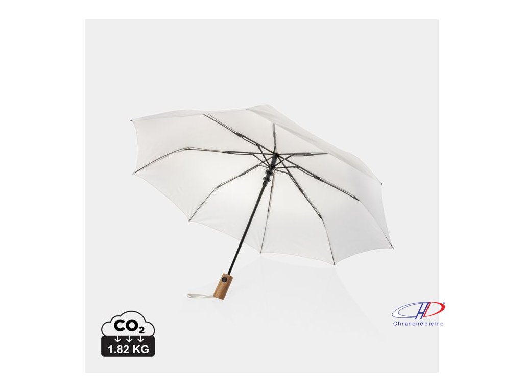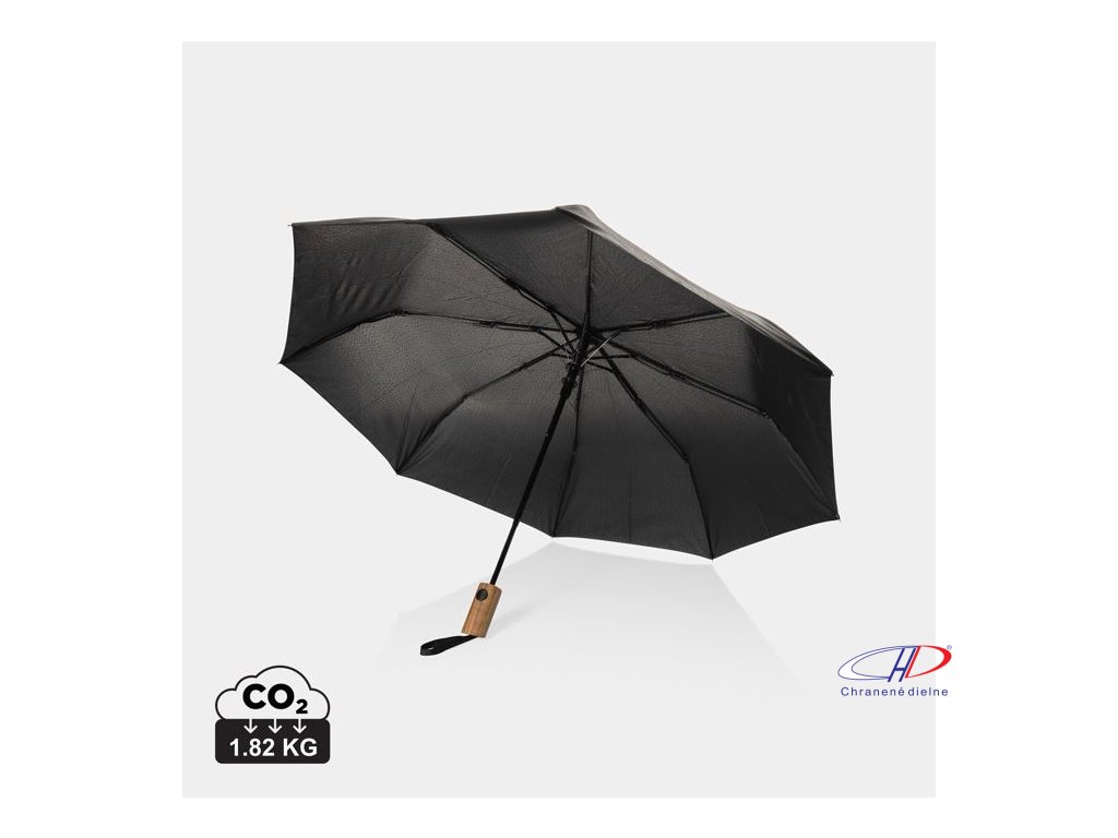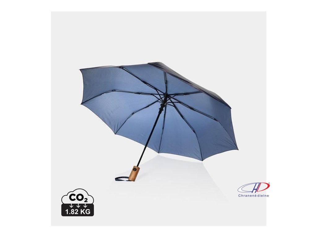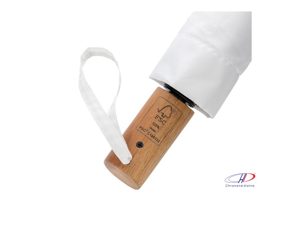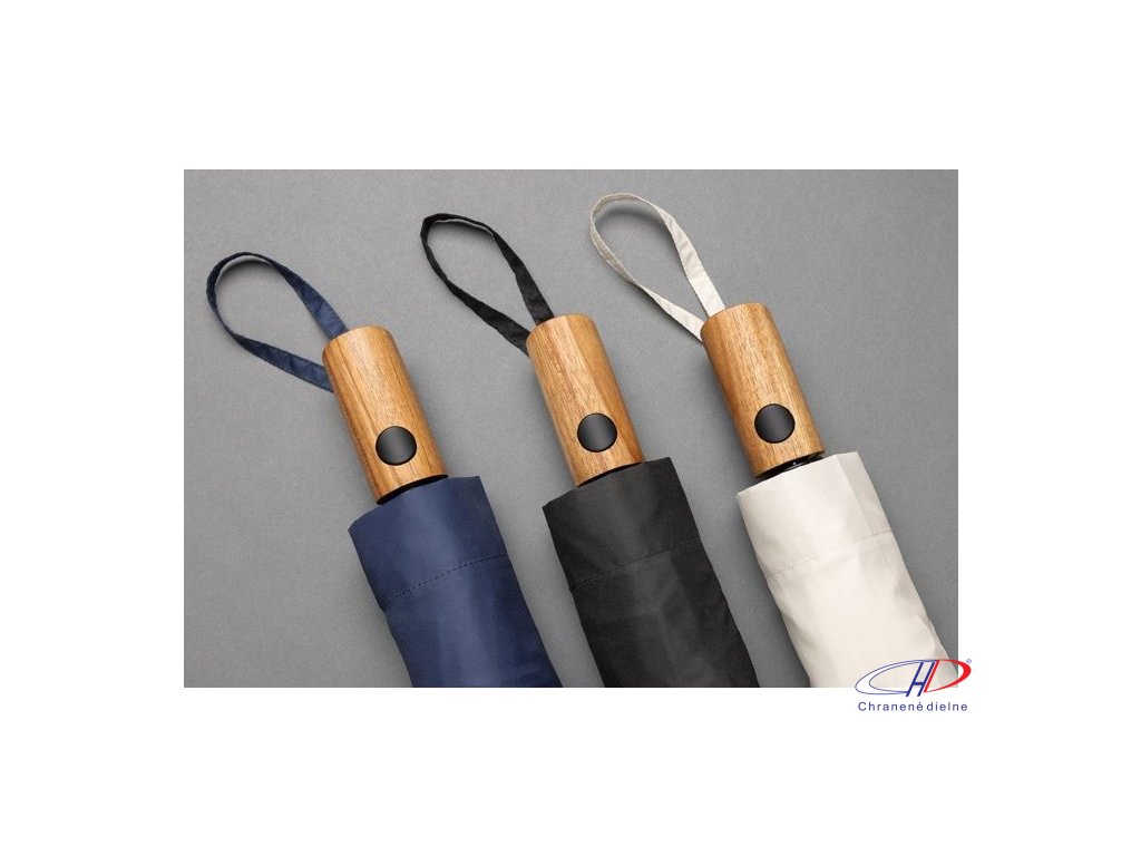 Kompaktný 3-dielny automatický dáždnik má kovový rám, rebrá zo sklených vlákien a rukoväť z akáciového dreva (FSC®). Strieška z RPET s indikátorom AWARE™. Výťažok 2% ide na podporu iniciatívy Water.org. Drevená rukoväť môže mať farebné rozdiely.Dodatočné parametre