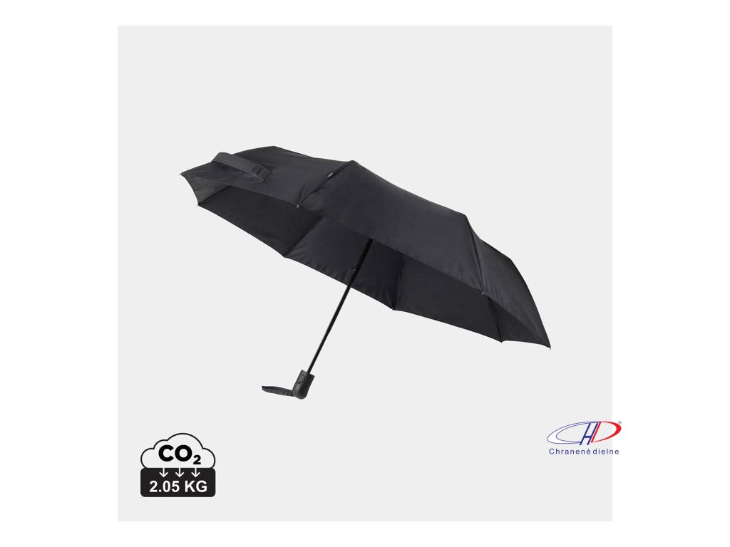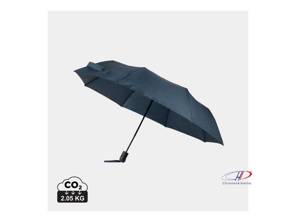 21" dáždnik vyrobený z 190T pongee RPET. Kovová palica, plne sklolaminátová kostra pre odolnosť v silnom vetre. Madlo z ABS plastu s pogumovanou úpravou. Automatické otváranie, manuálne zatváranie. Zapínacie pútko z ikonického Baltimore PU materiálu.Dodatočné parametre