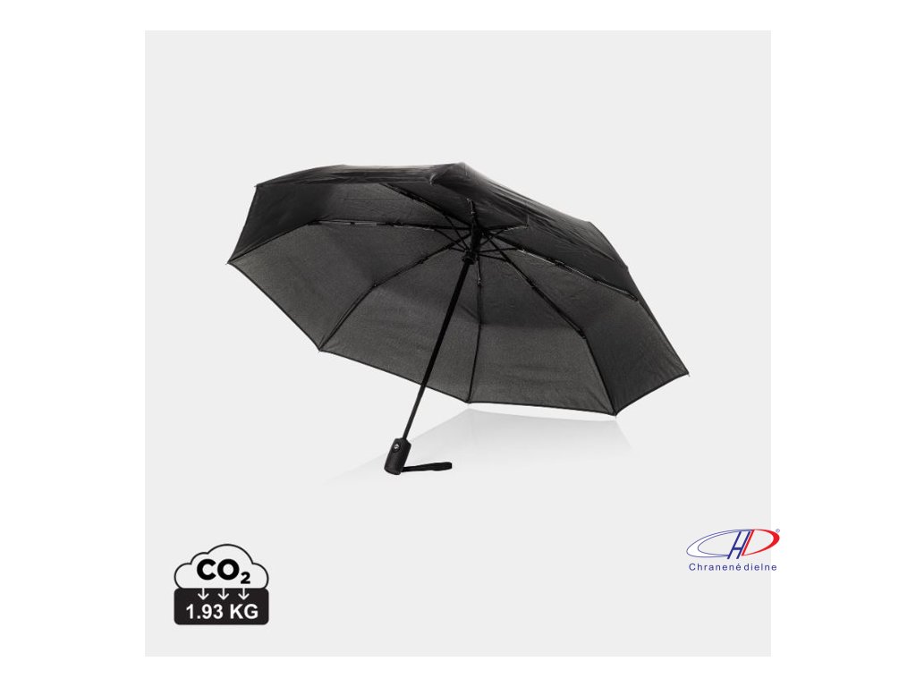 Luxusný 21" dáždnik s automatickým otváraním/zatváraním. Odolný proti vetru. Dodáva sa s oceľovým hriadeľom a laminátovým rámom. 8 rebier, 8 panelov; 3dielny dáždnik. Indikátor AWARE™, ktorý overuje použitie recyklovaných materiálov.Dodatočné parametre