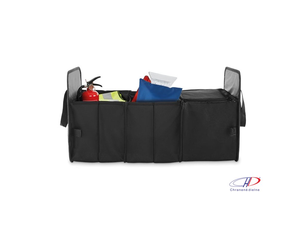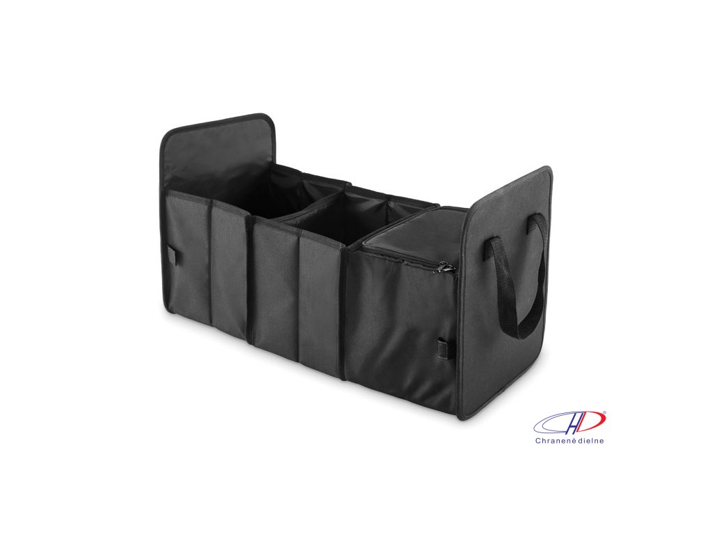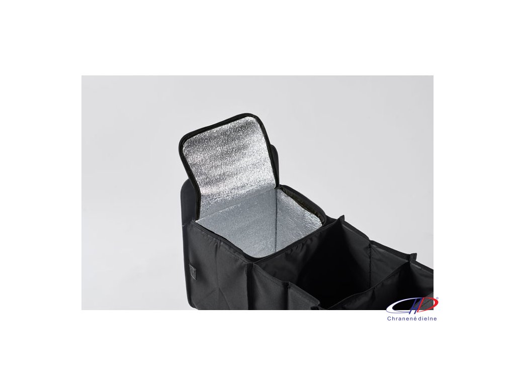Skladací organizér do auta z polyesteru 600D RPET s 3 priehradkami, z ktorých jedna je chladiaca.