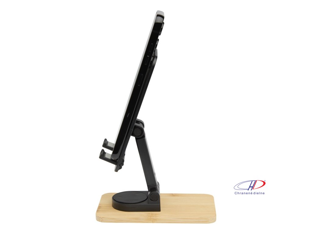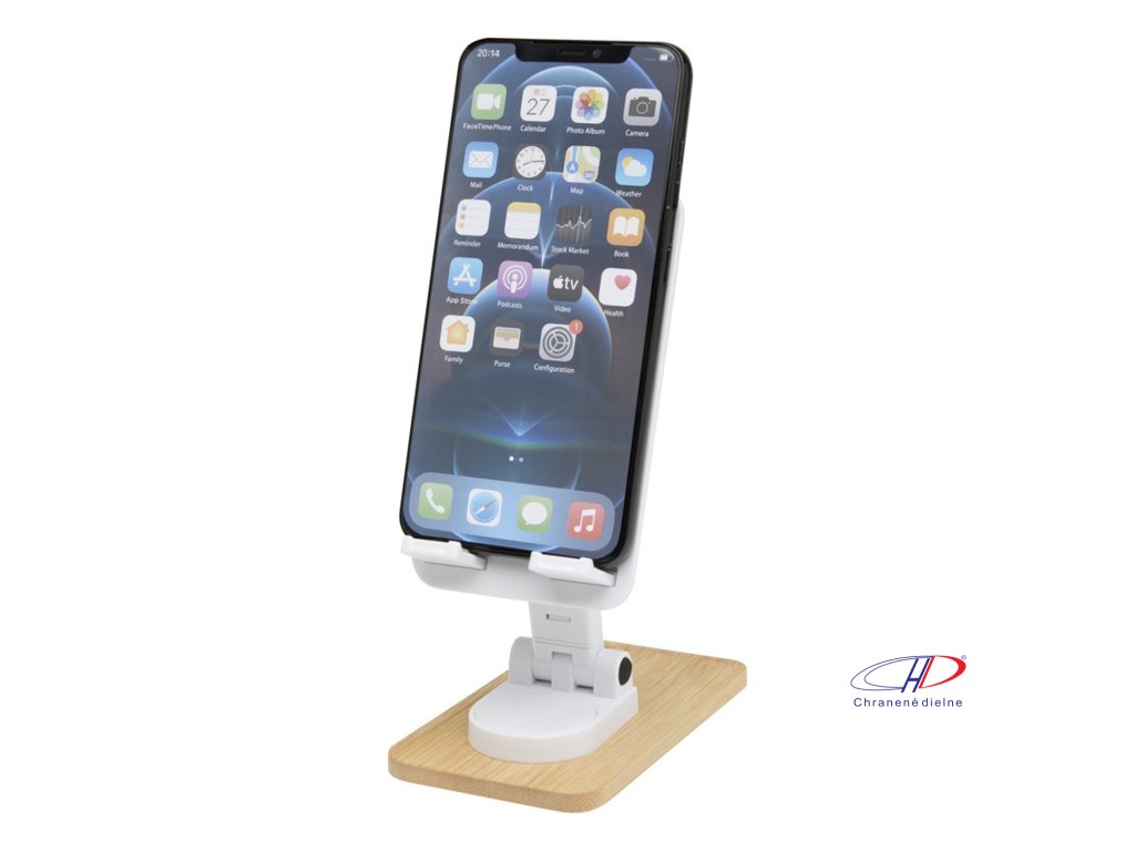 Stolový stojanček na telefón z recyklovaného plastu a bambusu zo zodpovedne získavaných zdrojov a ponúka pre telefón robustné a štýlové riešenie. Nastaviteľné uhly a výška zaisťujú pohodlný zážitok zo sledovania.Dodatočné parametre
