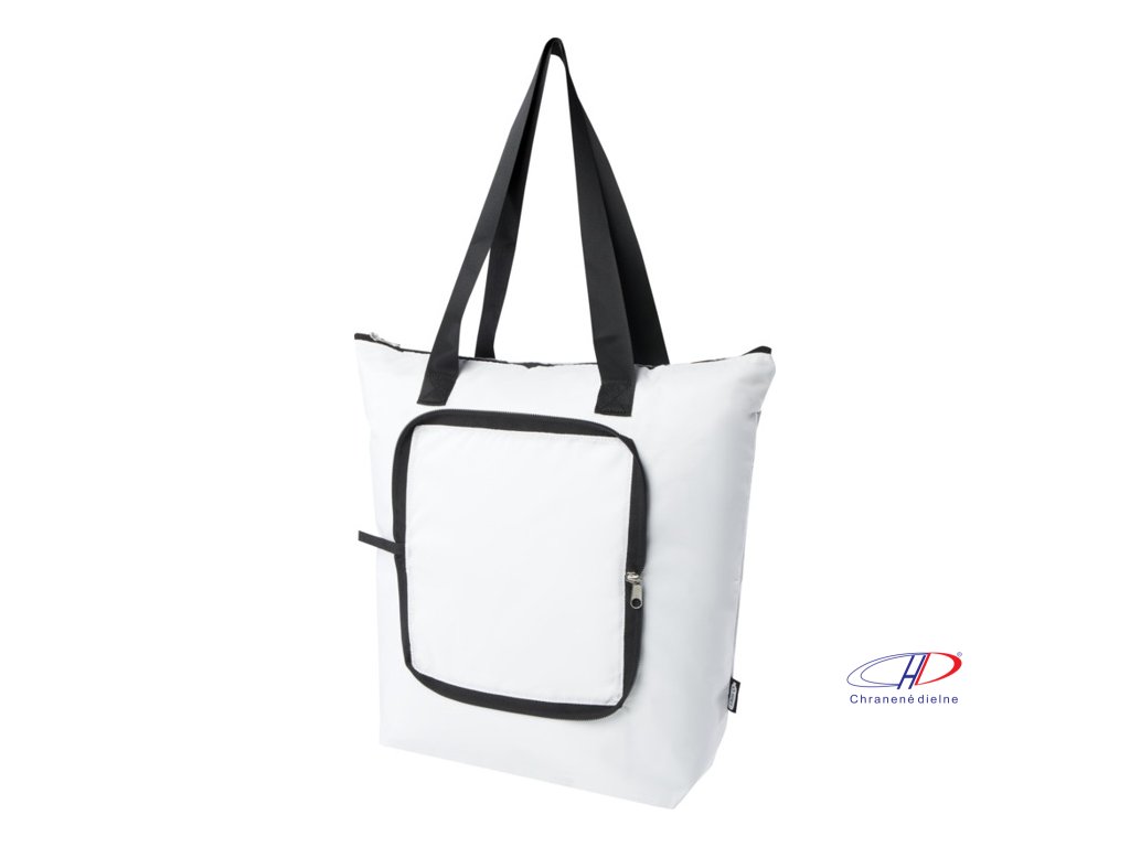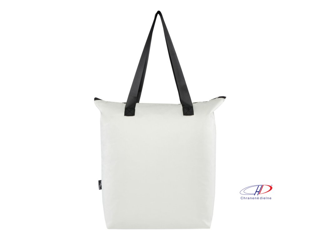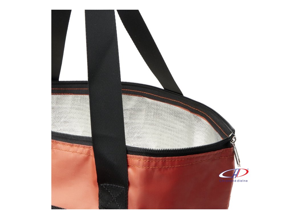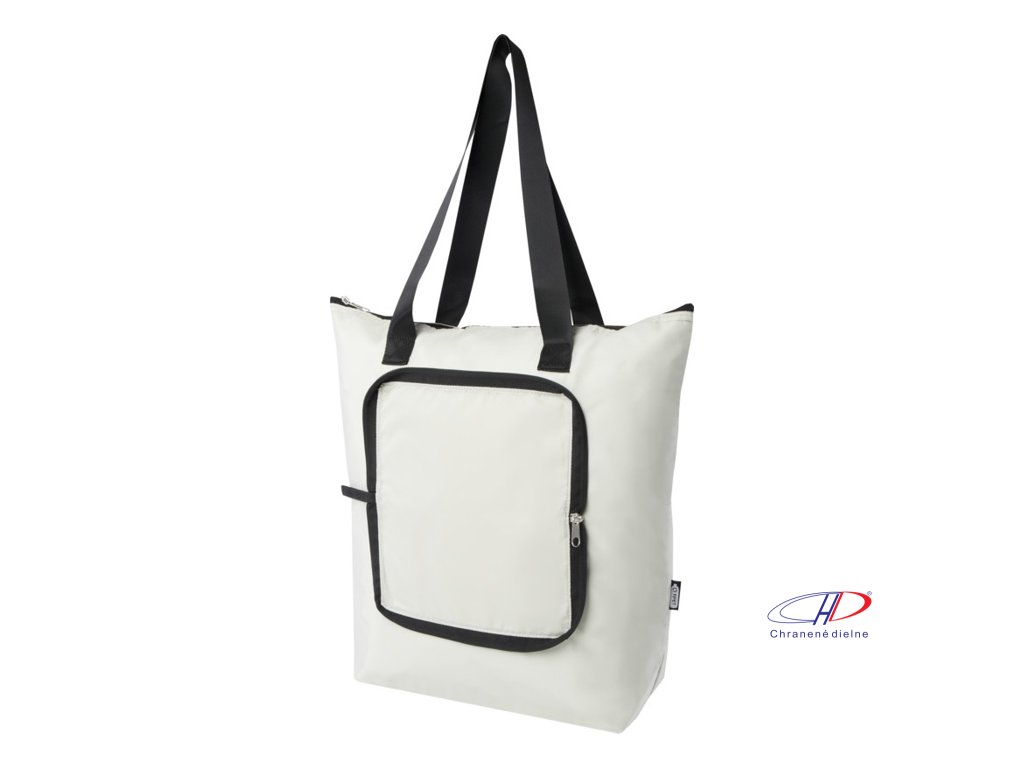 Túto odolnú chladiacu tašku je možné zložiť do kompaktného puzdra s pútkom. Má hlavnú priehradku na zips s hliníkovou fóliou, predné otvorené vrecko a dlhé uši z kvalitného hladkého popruhového materiálu.Vyrobené z RPET bez obsahu PVC. Objem: 15 litrov.Dodatočné parametre