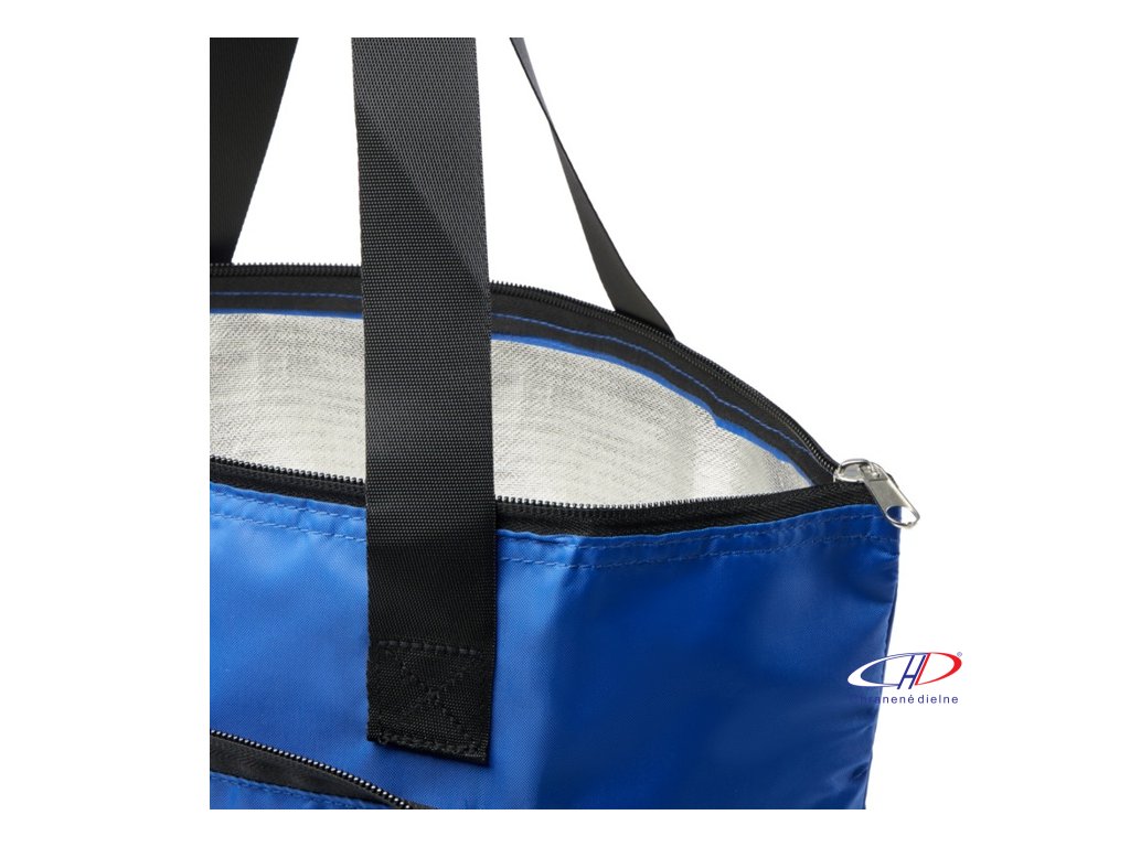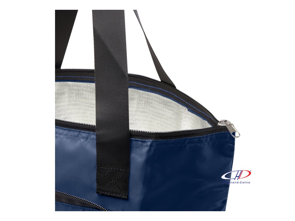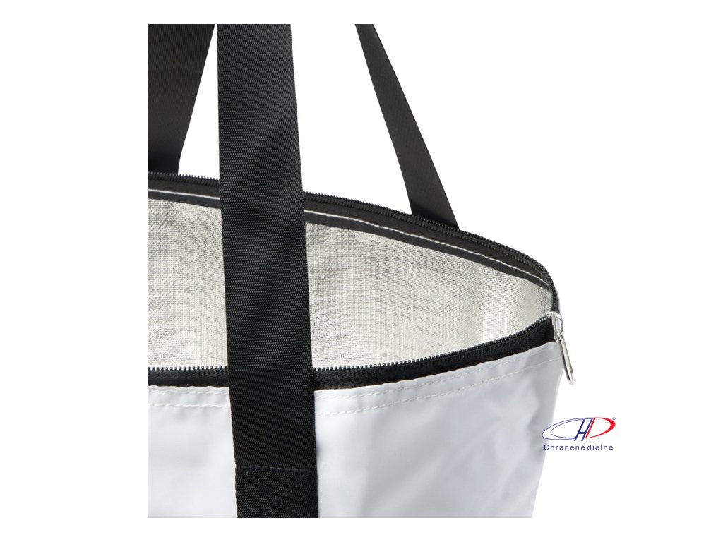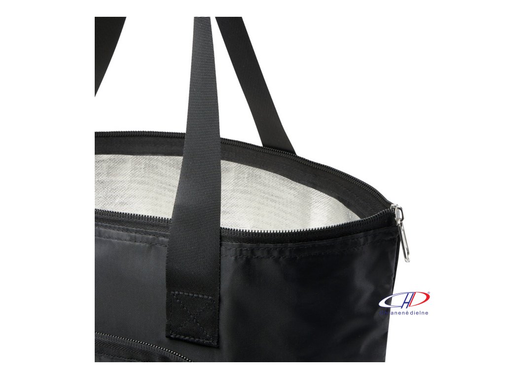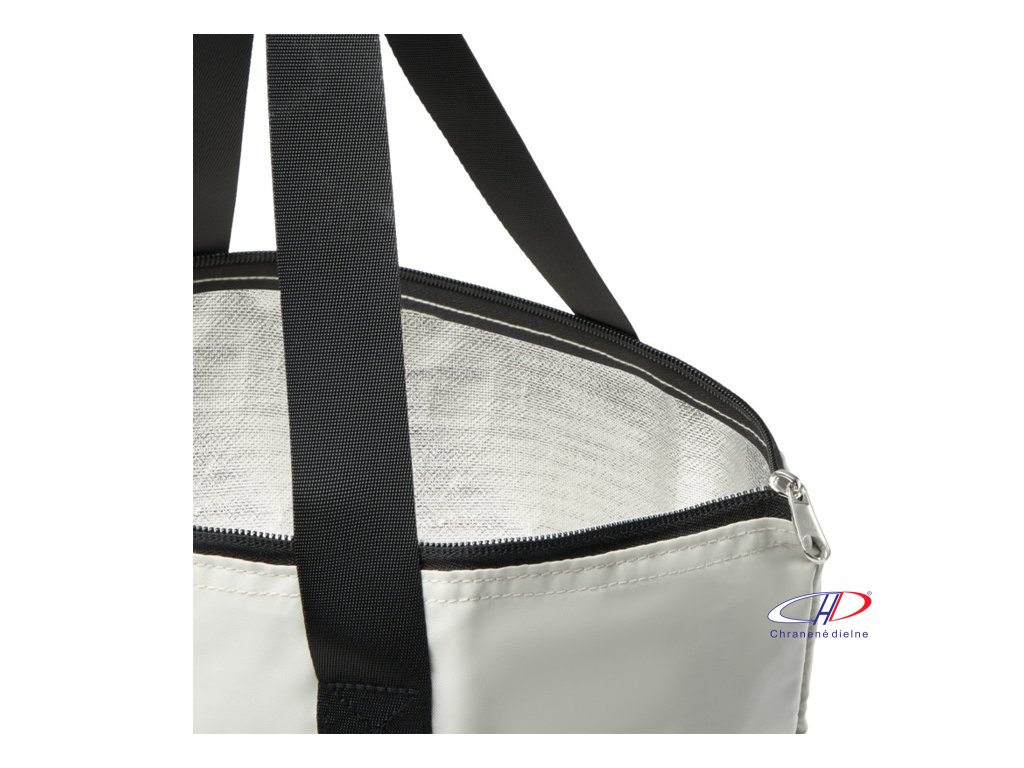 Túto odolnú chladiacu tašku je možné zložiť do kompaktného puzdra s pútkom. Má hlavnú priehradku na zips s hliníkovou fóliou, predné otvorené vrecko a dlhé uši z kvalitného hladkého popruhového materiálu.Vyrobené z RPET bez obsahu PVC. Objem: 15 litrov.Dodatočné parametre