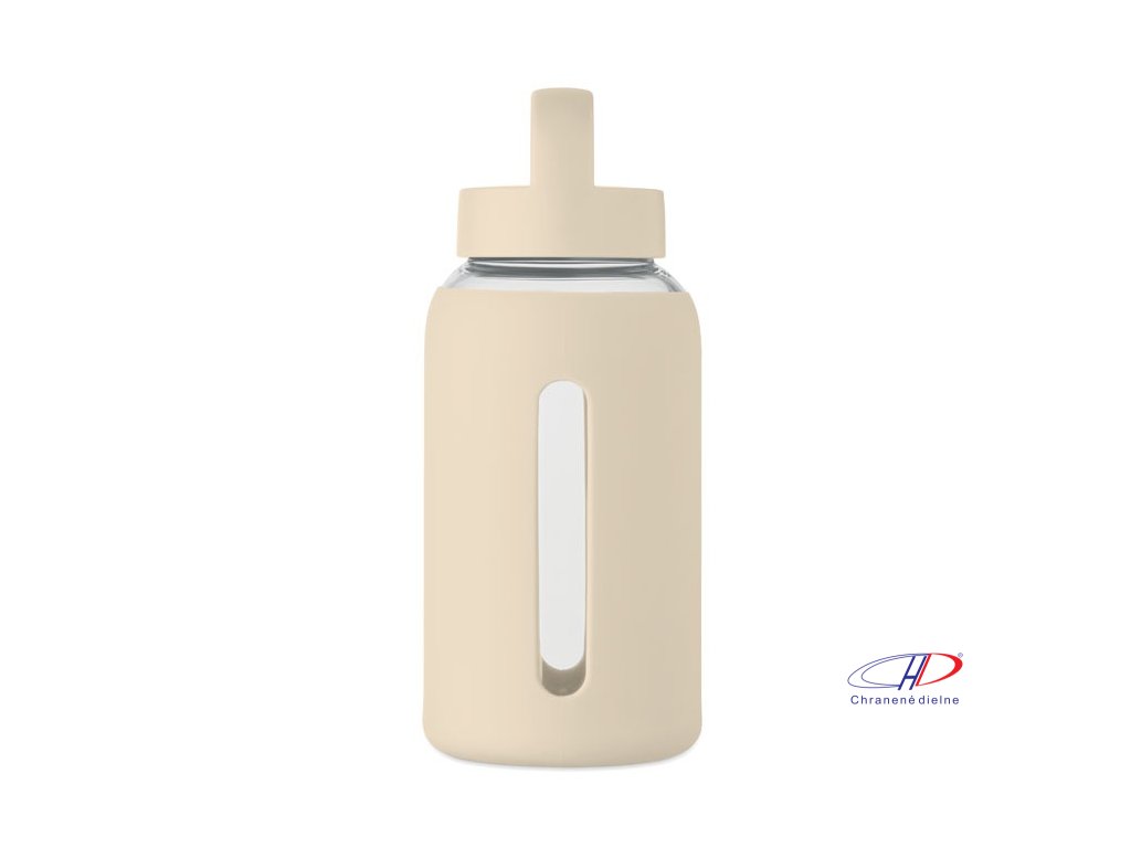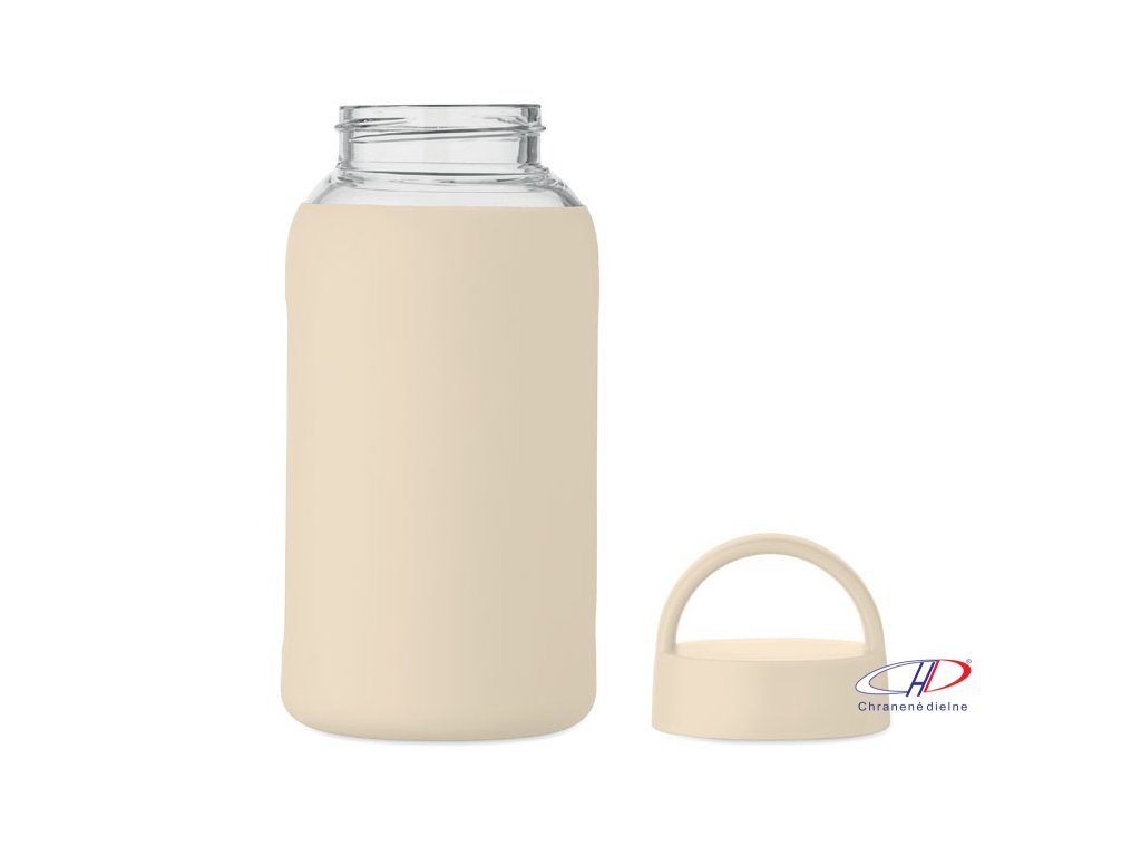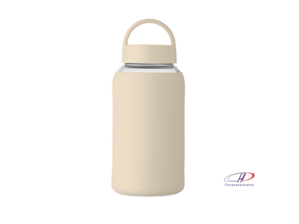 Sklenená fľaša (600 ml) so silikónovým návlekom , Beige