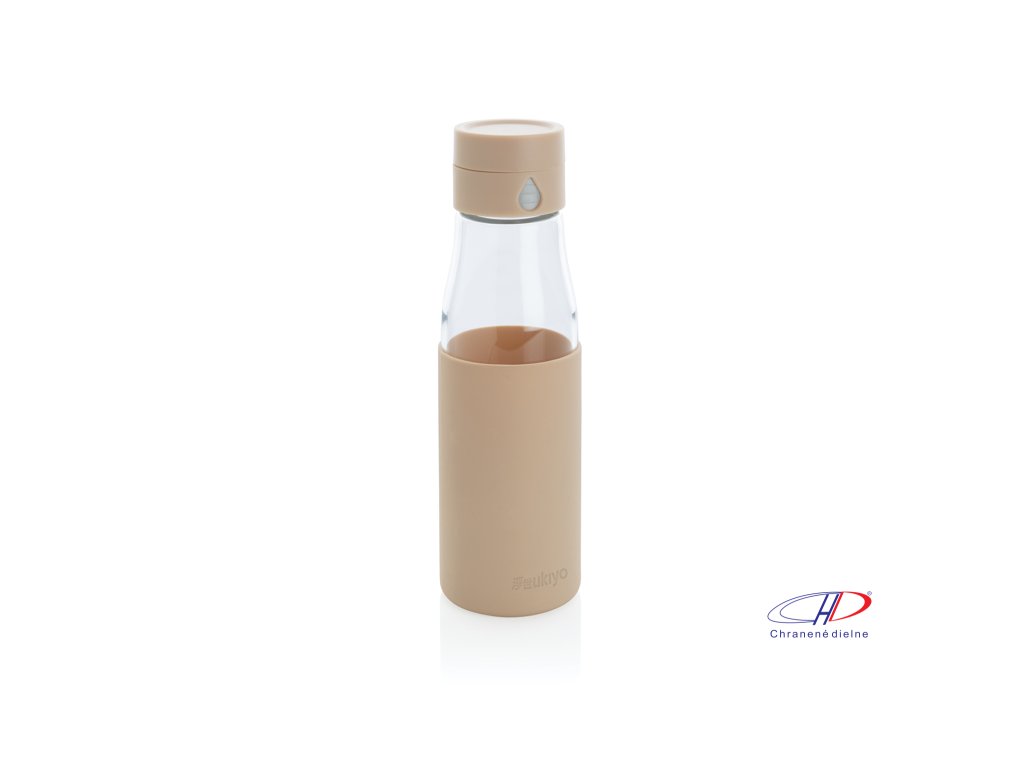 Sklenená fľaša Ukiyo sledujúci pitný režim 600 ml , Brown