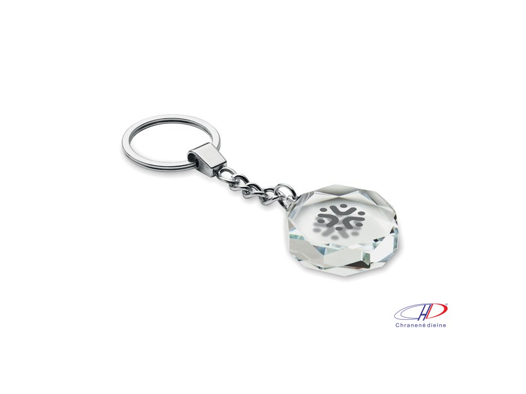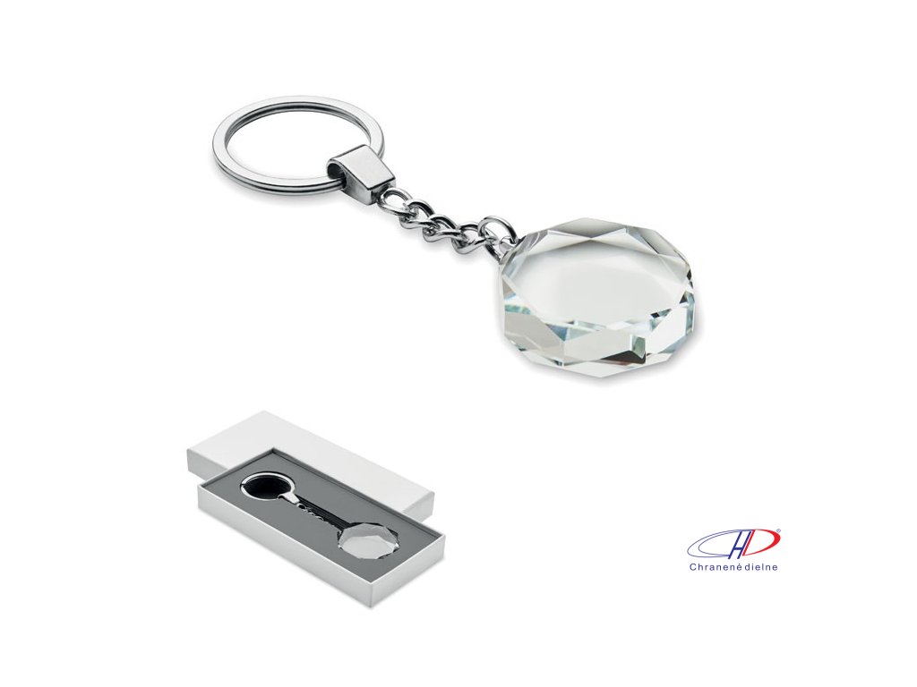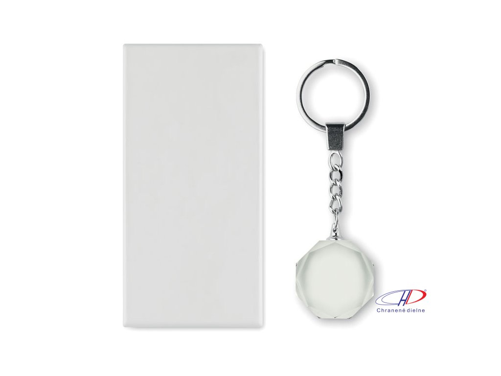 Sklenený okrúhly prívesok na kľúče. Dodávaný v darčekovej krabičke.Dodatočné parametre