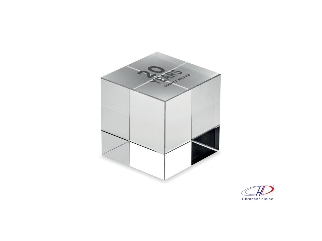 Ocenenie alebo trofej v tvare sklenenej kocky. Dodávané v darčekovej krabičke.Dodatočné parametre