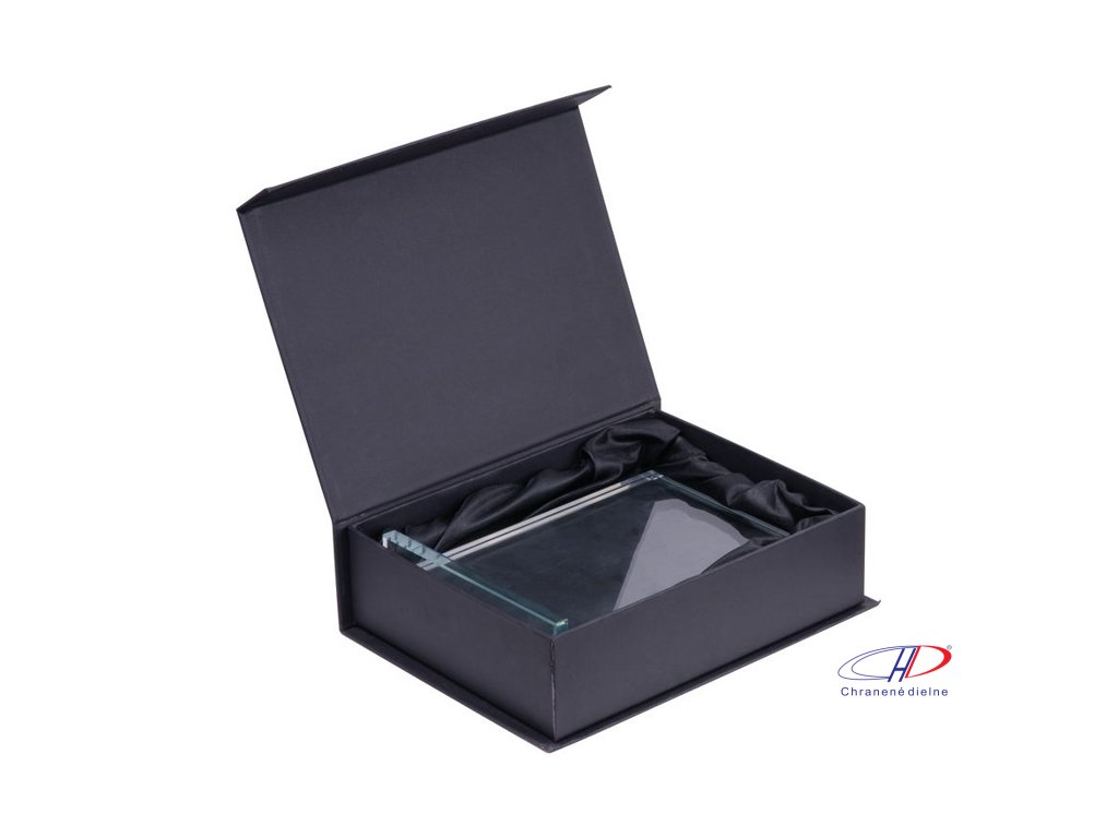 Sklenená trofej so pevným podstavcom, prezentovaná v darčekovej krabičke so saténovou podšívkou a magnetickým zatváraním.Dodatočné parametre