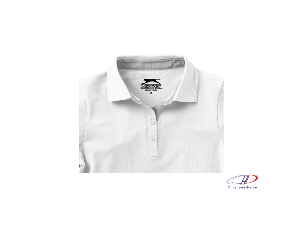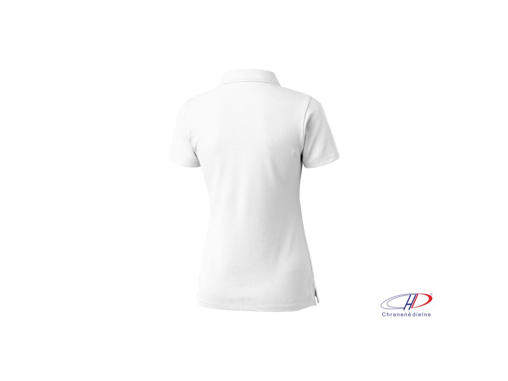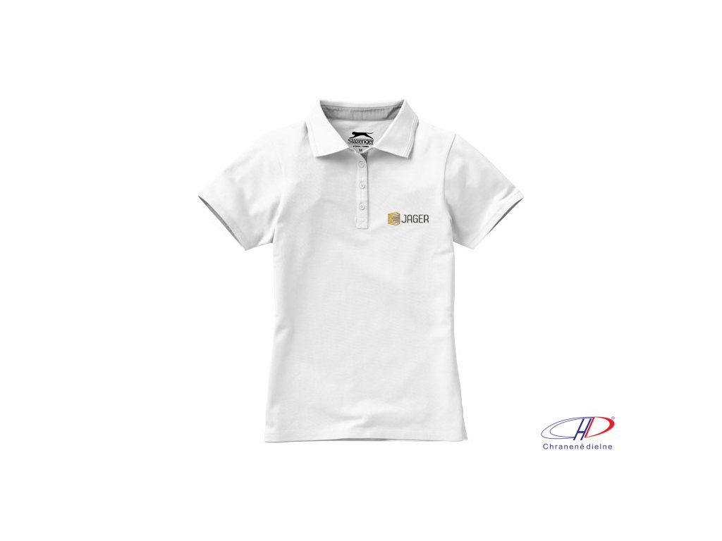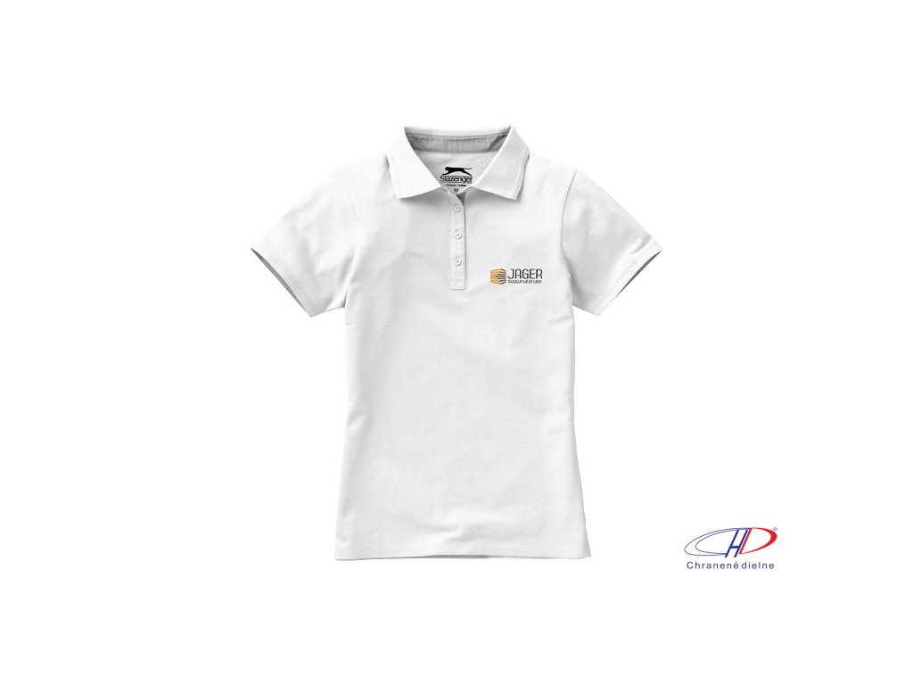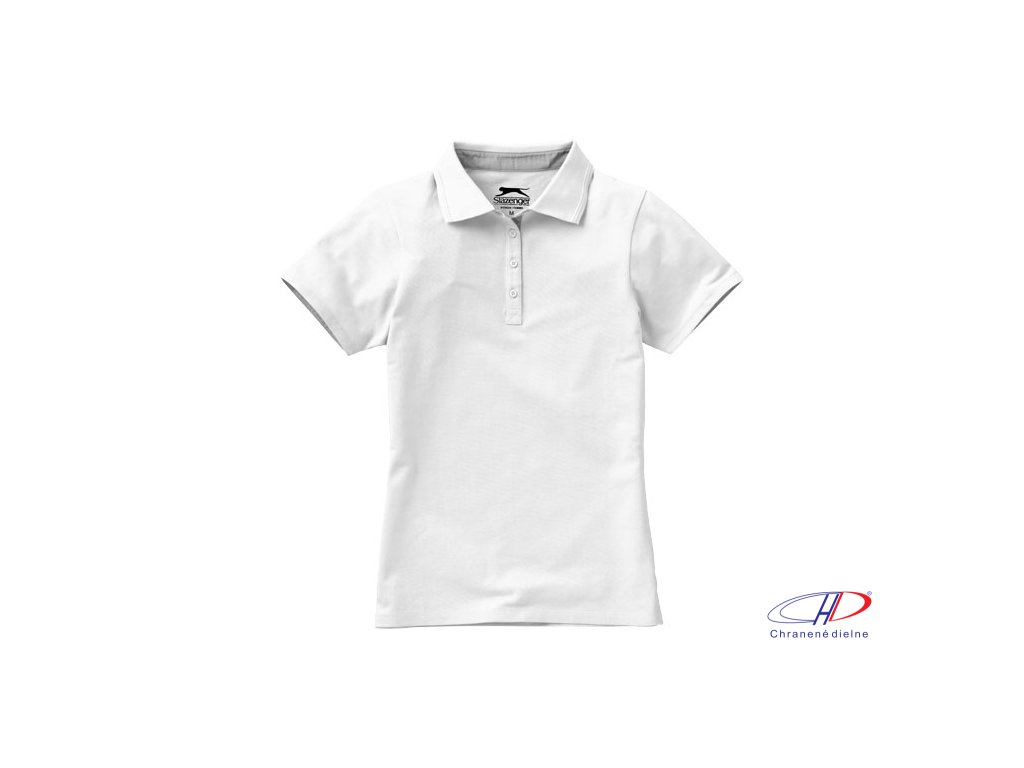 Hacker short sleeve ladies polo. Flat knit collar.Embossed tipping.Poplin inside collar stand and cuffs.Four button placket.Side slits.Dyed-to-match engraved buttons.Heat transfer main label for tagless comfort. Piqué knit of 100% Cotton. 220 g/m?.