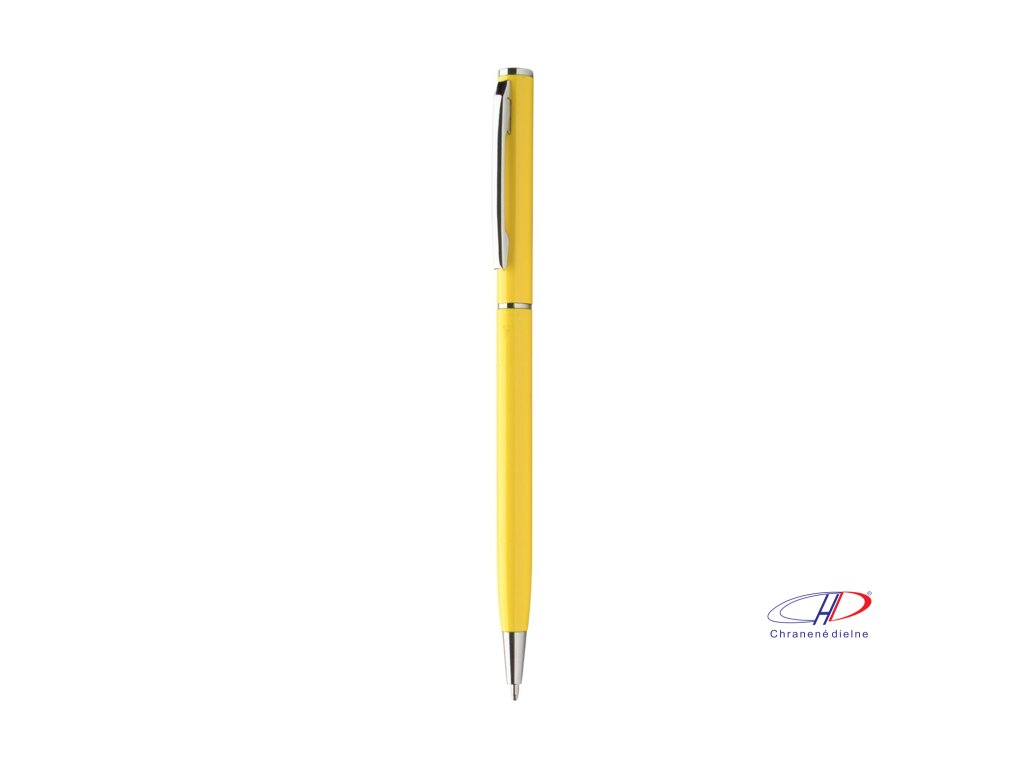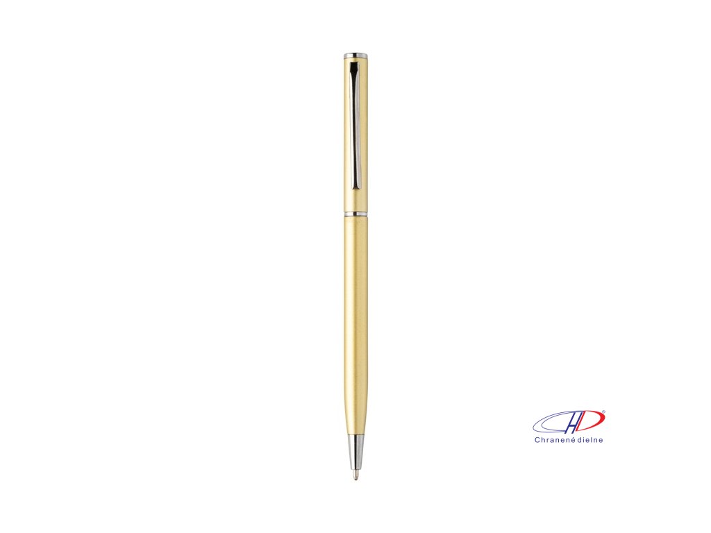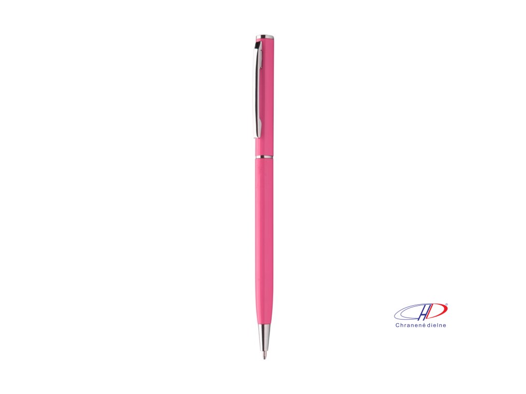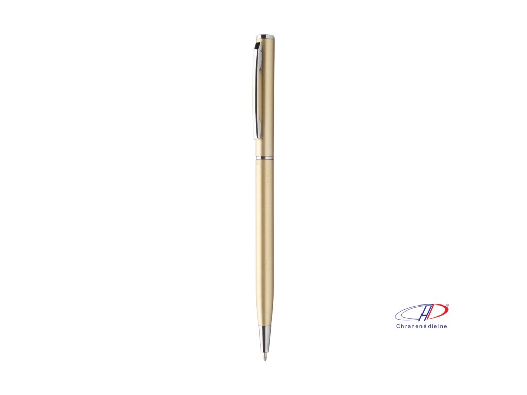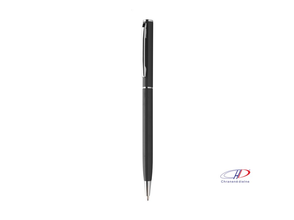 Guľôčkové pero z recyklovaného hliníka s chrómovanými časťami. S modrou náplňou.