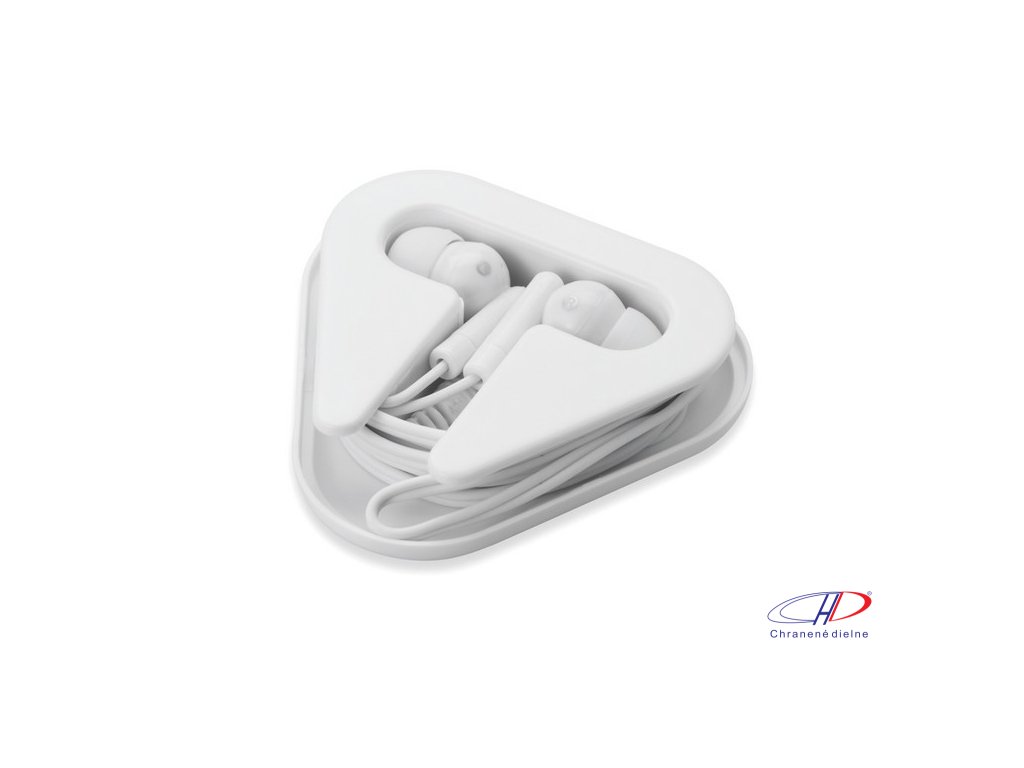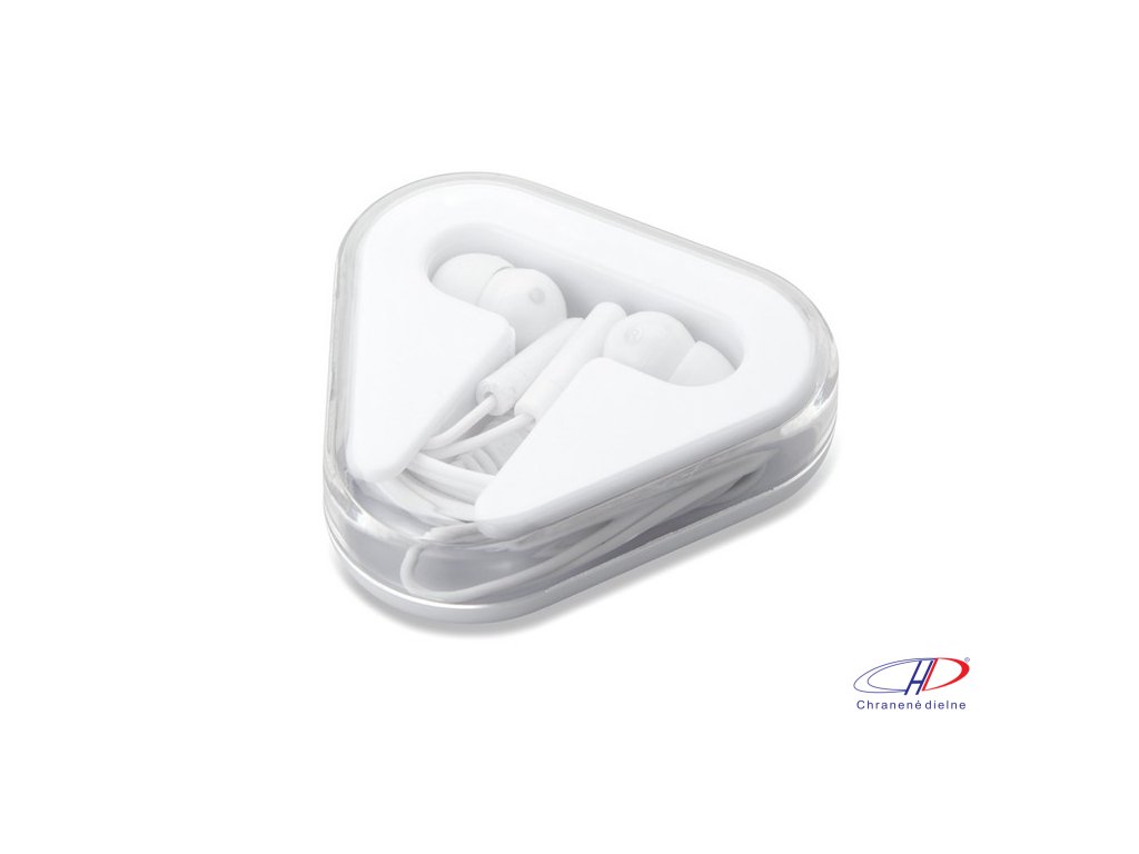 Slúchadlá z PVC umiestnené v puzdre z PS trojuholníkového tvaru. Dĺžka kábla 120 cm.