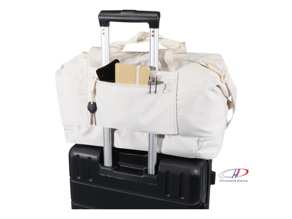 Hlavná priehradka obsahuje veľké vrecko na zips, spolu s 2 vnútornými zasúvacími vreckami a 2 držiakmi na fľaše. Samostatná spodná priehradka na uloženie topánok alebo oddelenie vybavenia. Taška je dodávaná s indikátorom Aware™. Objem: 42 litrov.Dodatočné parametre