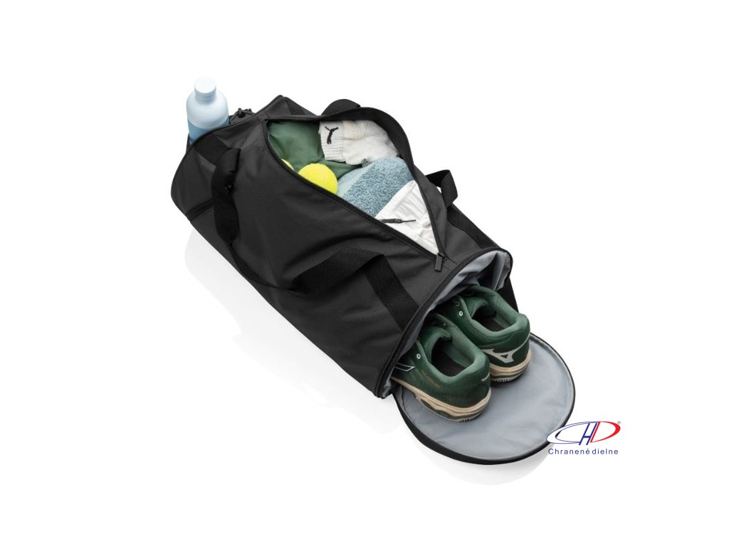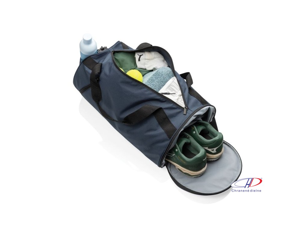 Nastaviteľný ramenný popruh (140 cm) a niekoľko priehradok na jednoduché uloženie. Predné vrecko na zips, priehradka na topánky na zips a priestranná hlavná priehradka. Vyrobené z recyklovaného polyesteru so značením AWARE™. Neobsahuje PVC.Dodatočné parametre