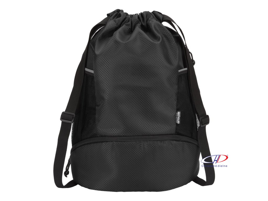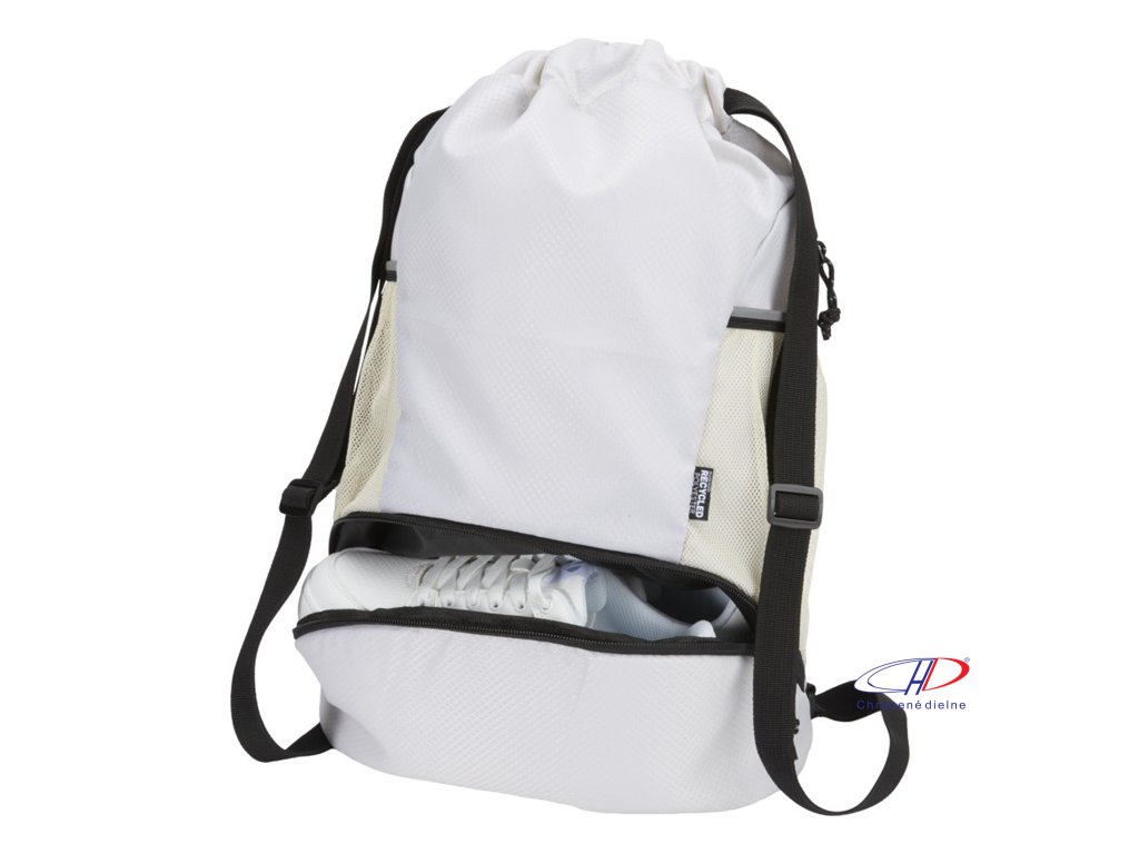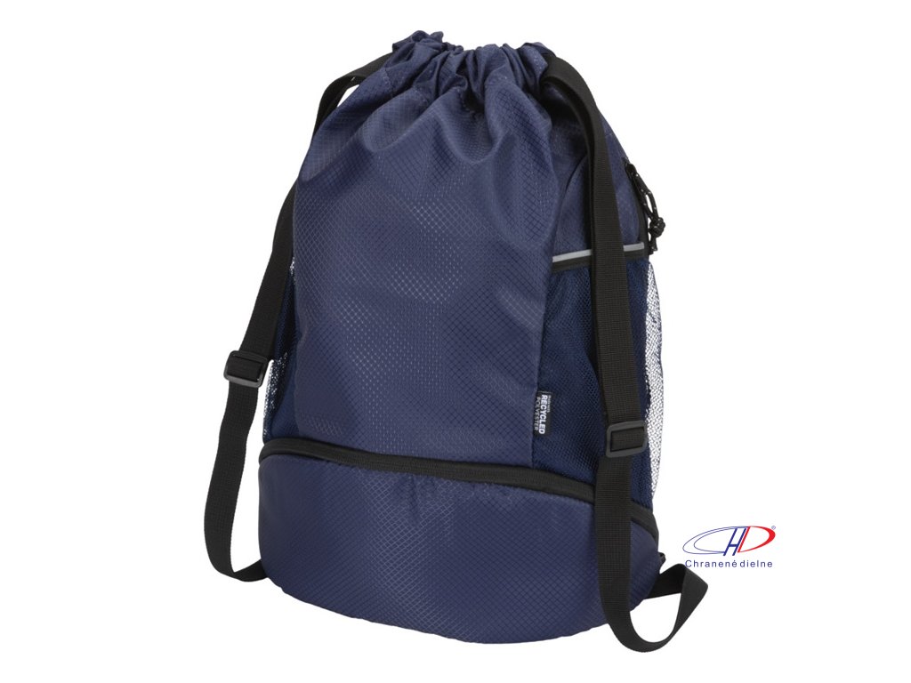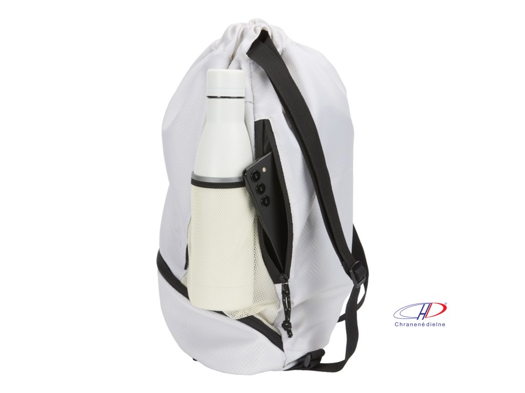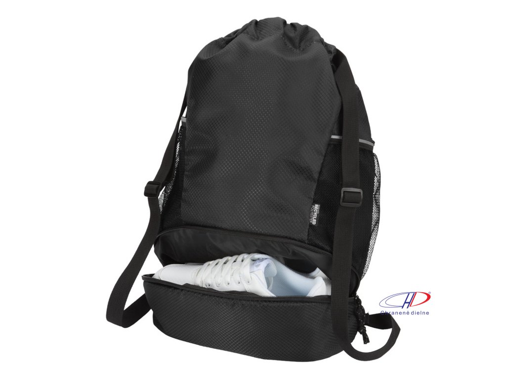 Športová taška so sťahovacou šnúrkou s vodoodpudivou úpravou. Priestranný hlavný oddiel, samostatná spodná priehradka na topánky, dve bočné sieťované vrecká s reflexnými detailmi, skryté vrecko na zips a nastaviteľné ramenné popruhy.Dodatočné parametre