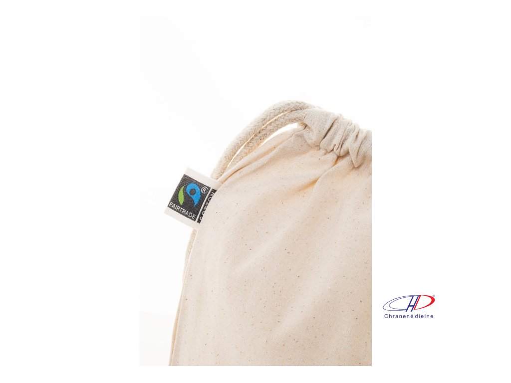 Fairtrade bavlnený vak so sťahovacou šnúrkou s výraznou Fairtrade etiketou. 100% bavlna Fairtrade, 180 g/m2.Dodatočné parametre