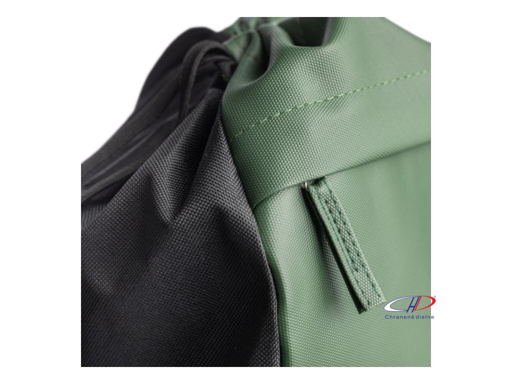 Polyesterové vrecko z rPET (600D) s vodeodolným PU záterom. Skryté predné vrecko na zips a priestranná priehradka so sťahovacou šnúrkou. Obsahuje 2 priehradky s predným a vnútorným vreckom. Objem 8 l, nosnosť 8 kg. Vrátane štítku rPET na vonkajšej strane.Dodatočné parametre