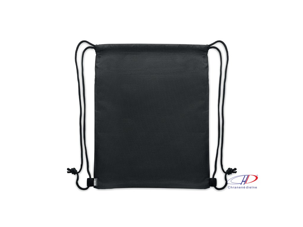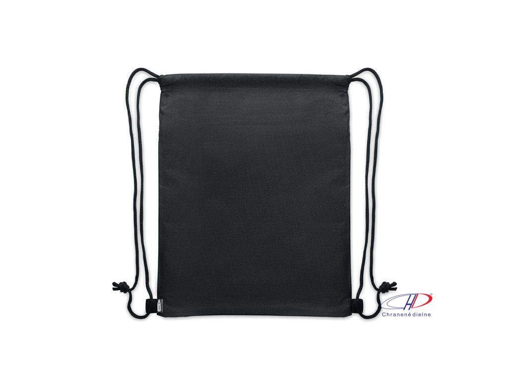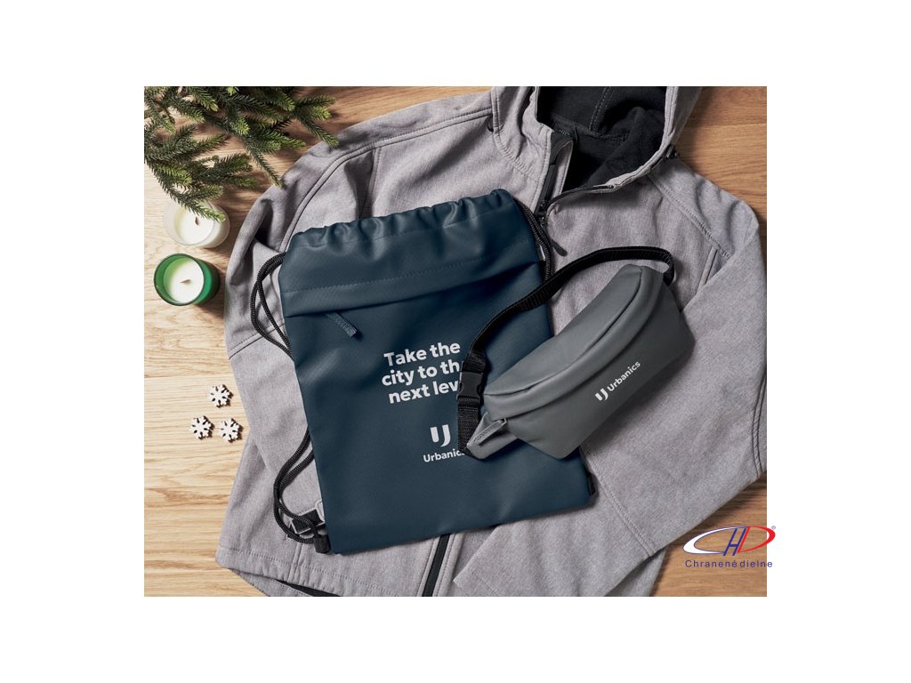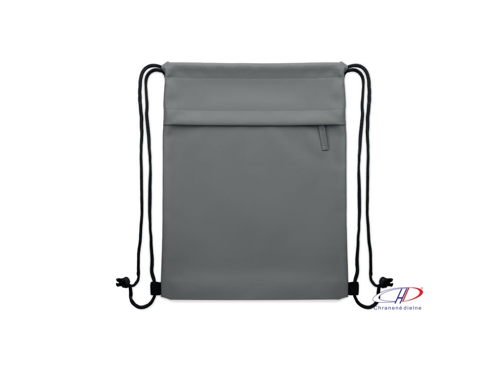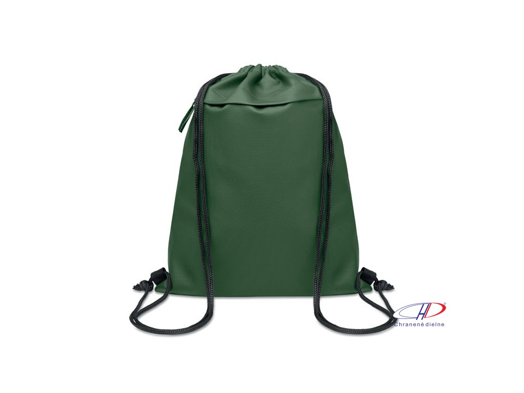 Taška so sťahovacou šnúrkou s PU záterom z polyesteru 600D RPET a podšívkou z polyesteru 190T RPET. Predné vrecko na zips.Dodatočné parametre