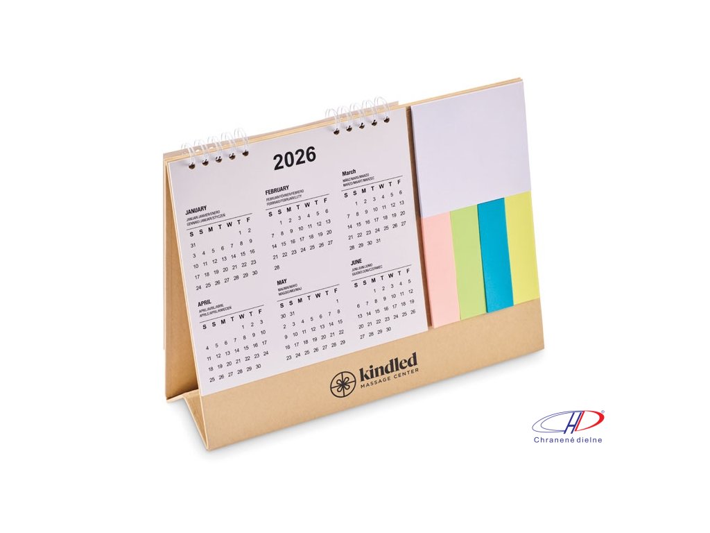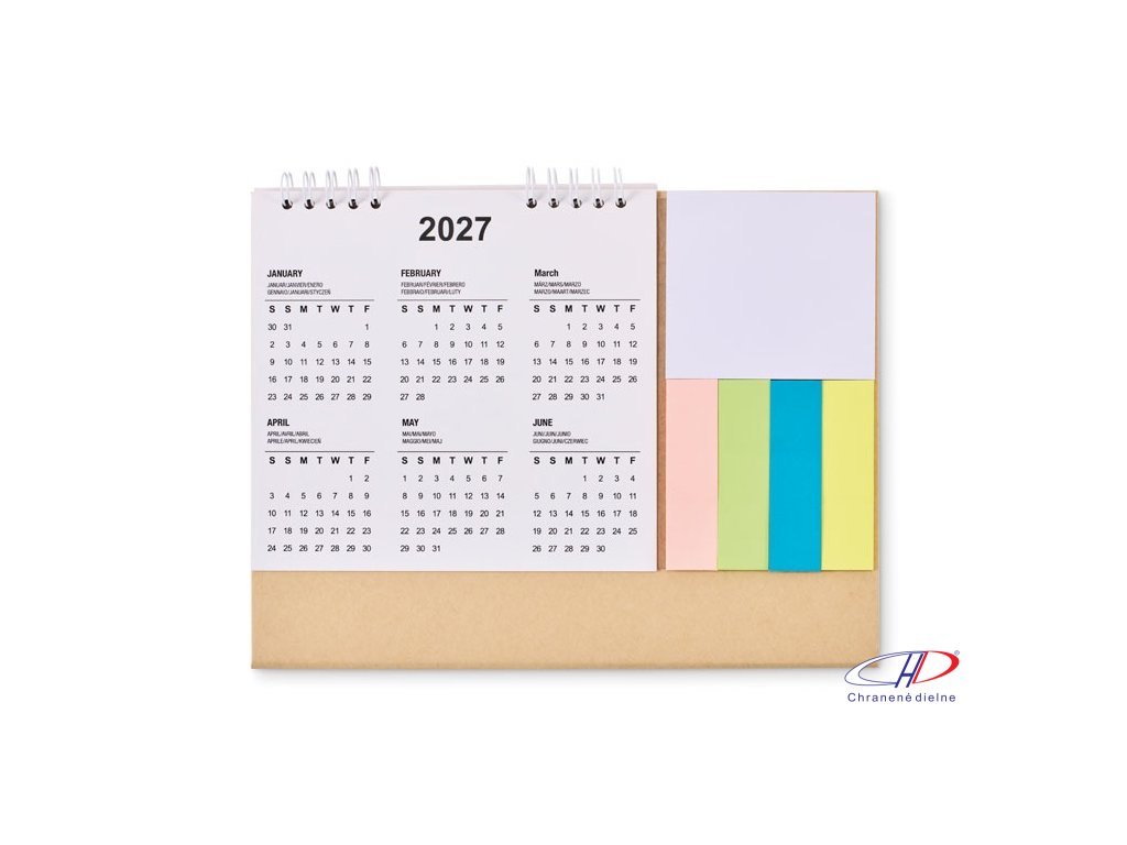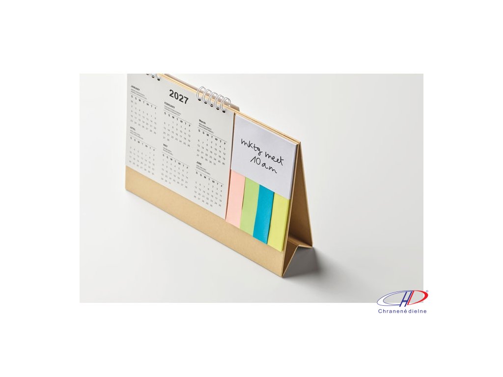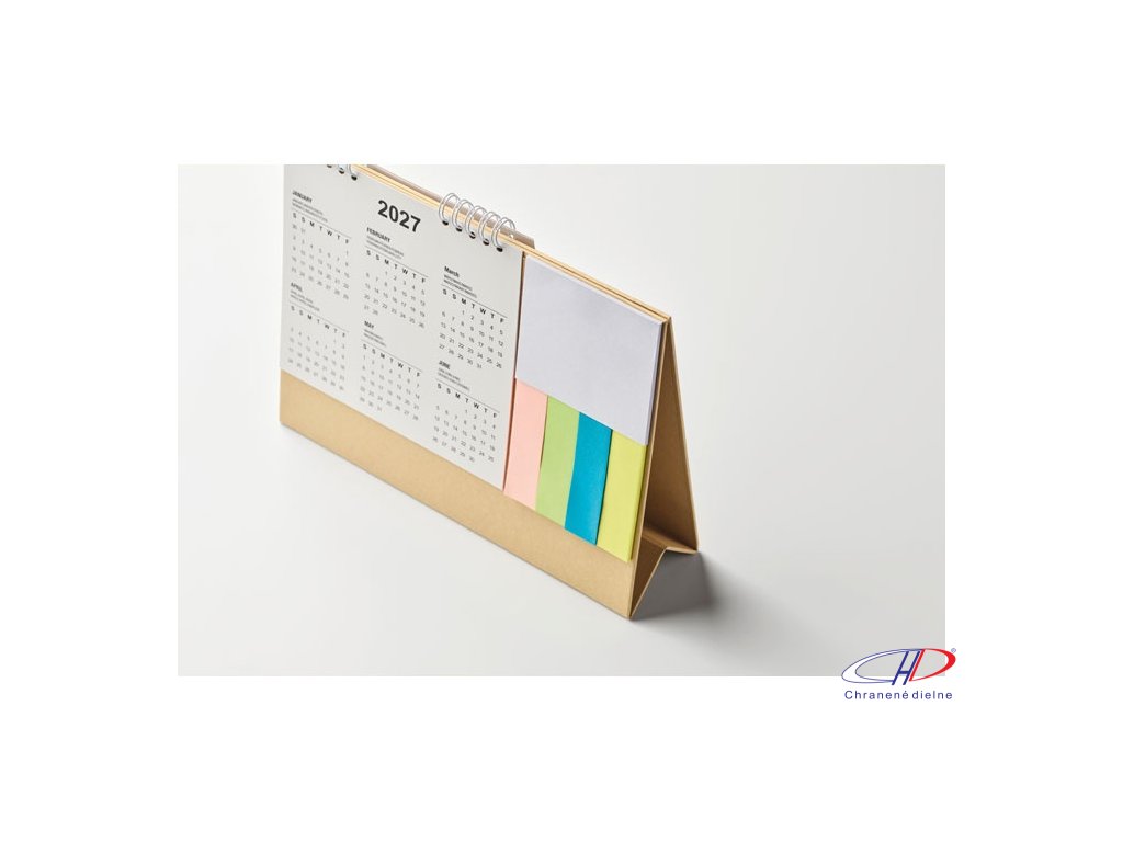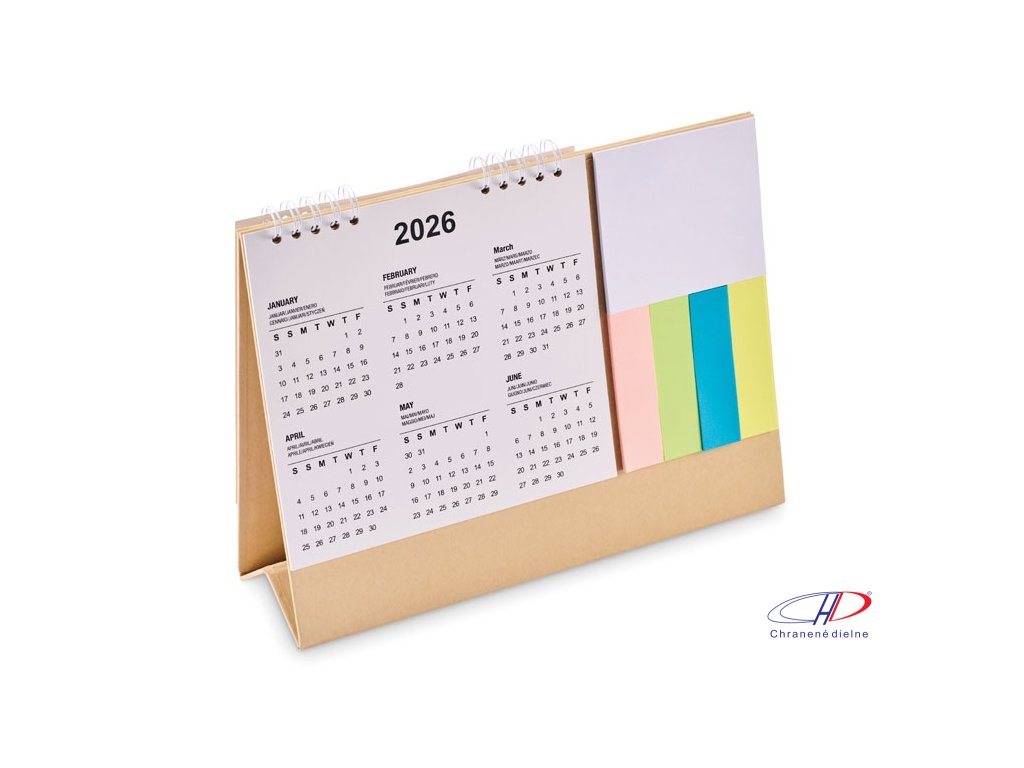 Stolový kalendár na 4 roky s 3-dielnymi lepiacimi papierikmi a poznámkovým blokom v kartónovom držiaku. Certifikované FSC®Dodatočné parametre