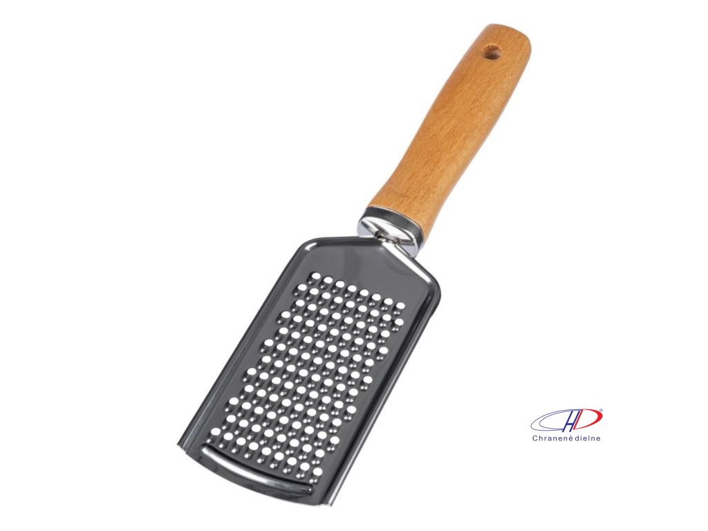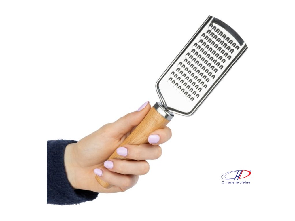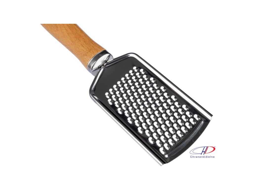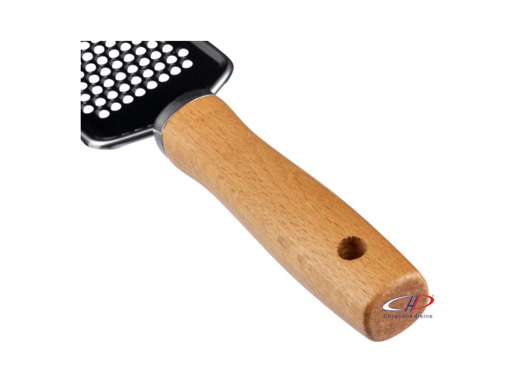 Drevené strúhadlo s komponentmi z nehrdzavejúcej ocele (rašpľa triedy 430 a držiak triedy 410). S otvorom v rukoväti na upevnenie. Rozmery: 24,5 x 5,8 cm. Nie je vhodné do umývačky riadu.Dodatočné parametre