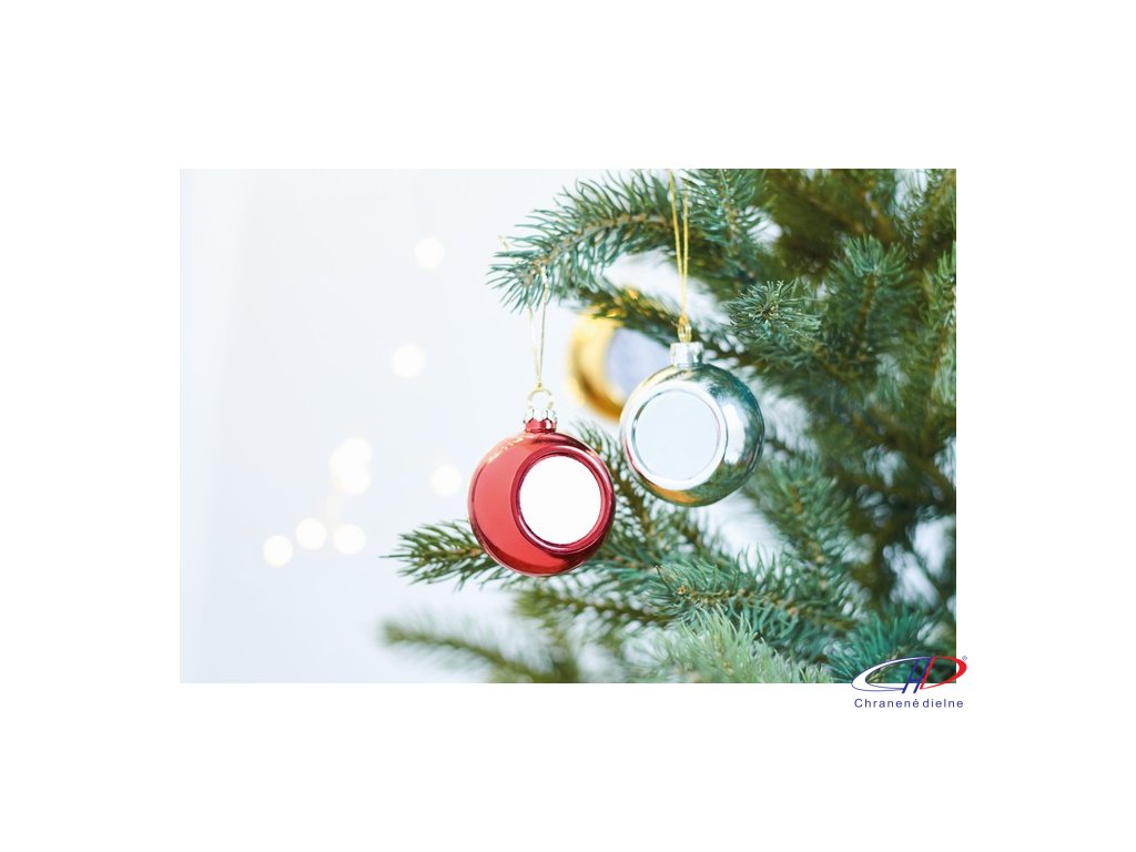 Lesklá vianočná guľa obahujúca priestor pre sublimačnú tlač. Priemer 6 cm.Dodatočné parametre
