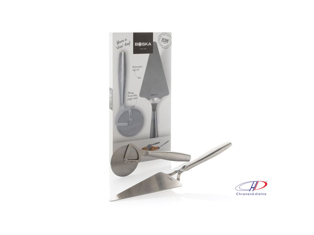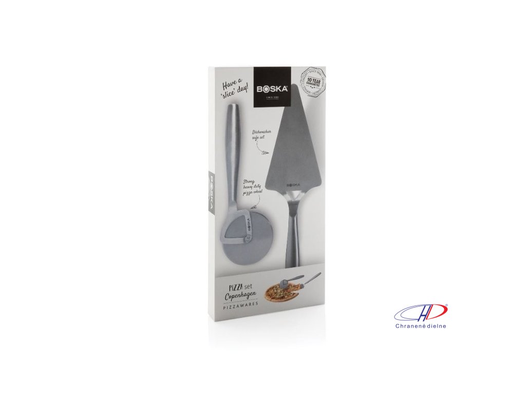 Súprava na pizzu BOSKA Copenhagen obsahuje nerezový krájač a lopatku na pizzu. Je možné ju umývať v umývačke a skladovať v chladničke. Na výrobok je doživotná záruka.Dodatočné parametre